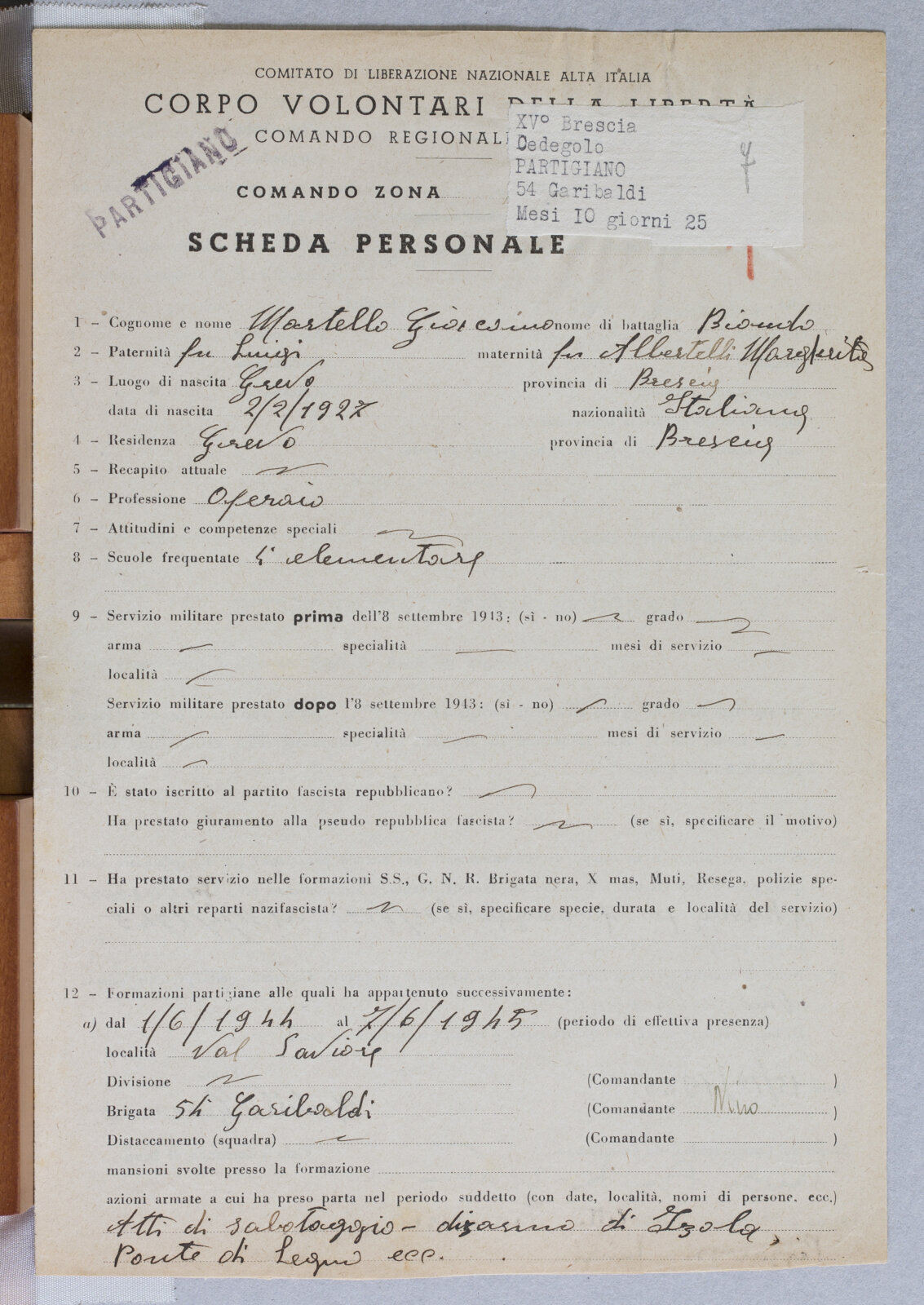FERRARI GIOVANNI (02-03-1928) - Partigiano