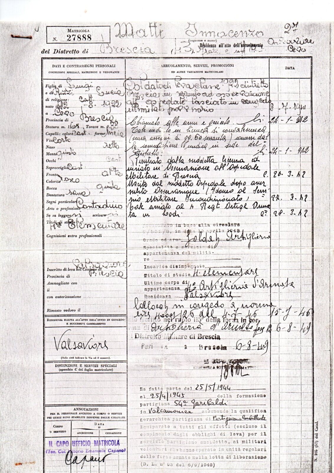 MATTI ISIDORO - Partigiano