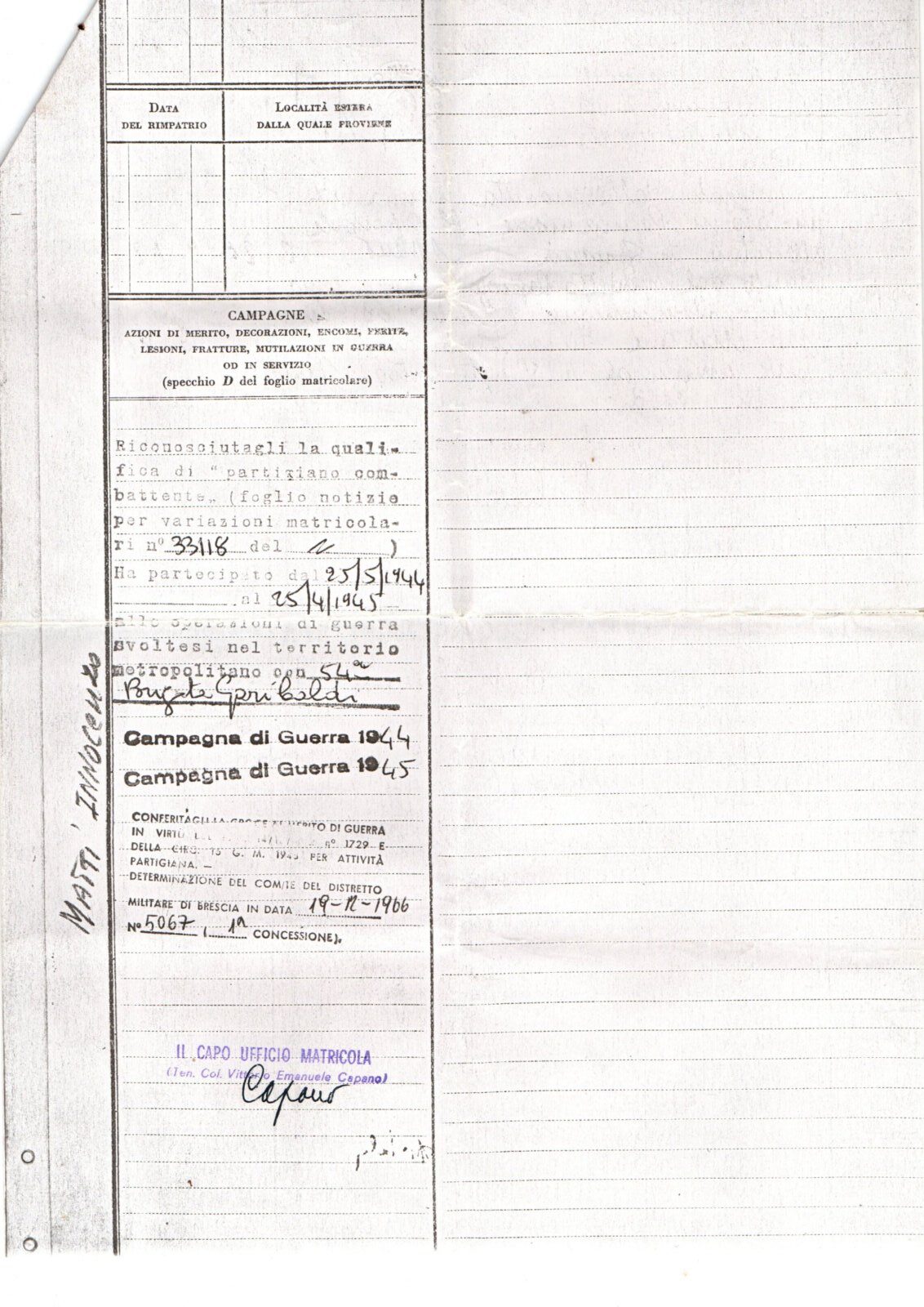 CAMPANA GIOVANNI- Partigiano