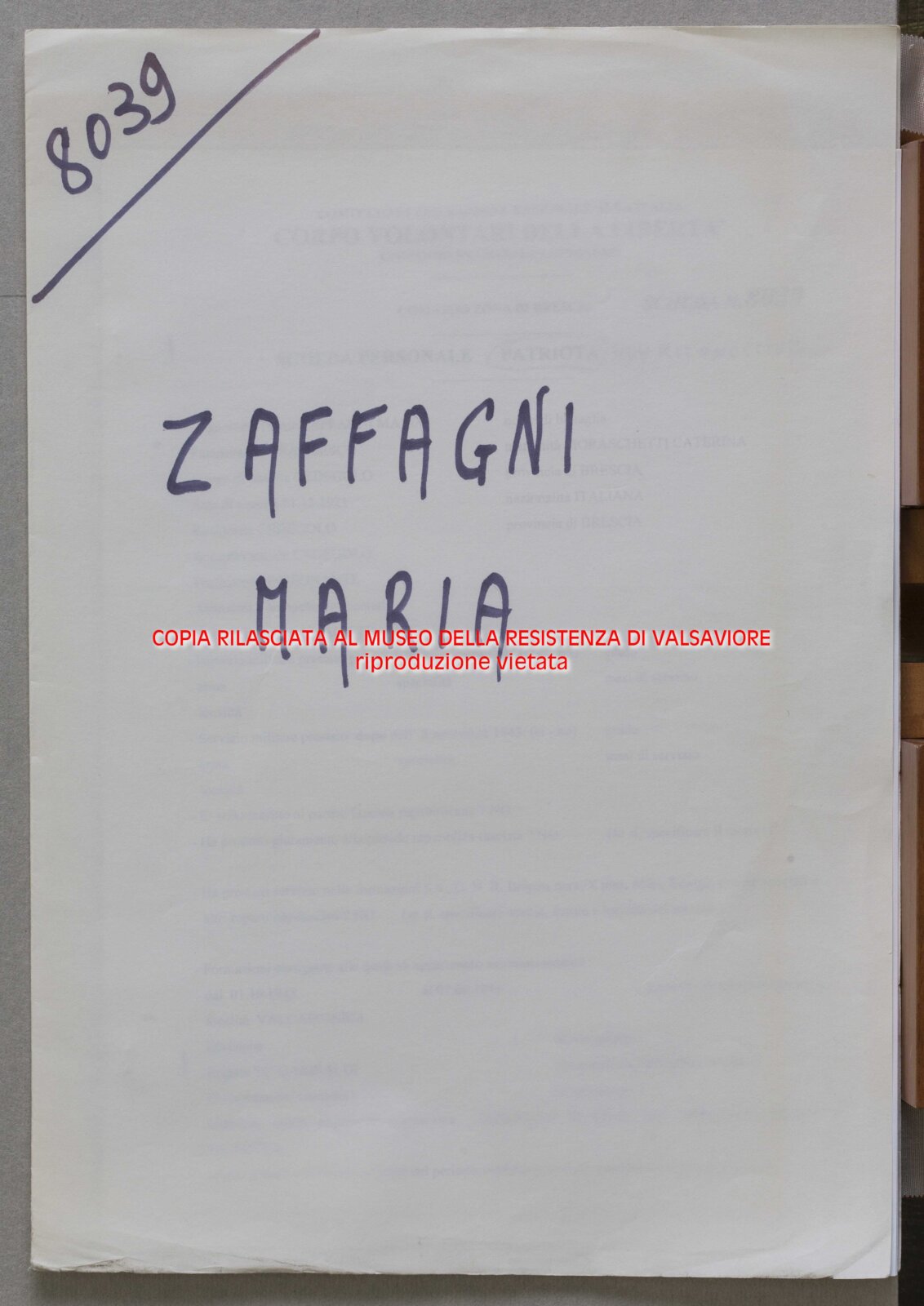 ZAFFAGNI MARIA - Partigiana non riconosciuto
