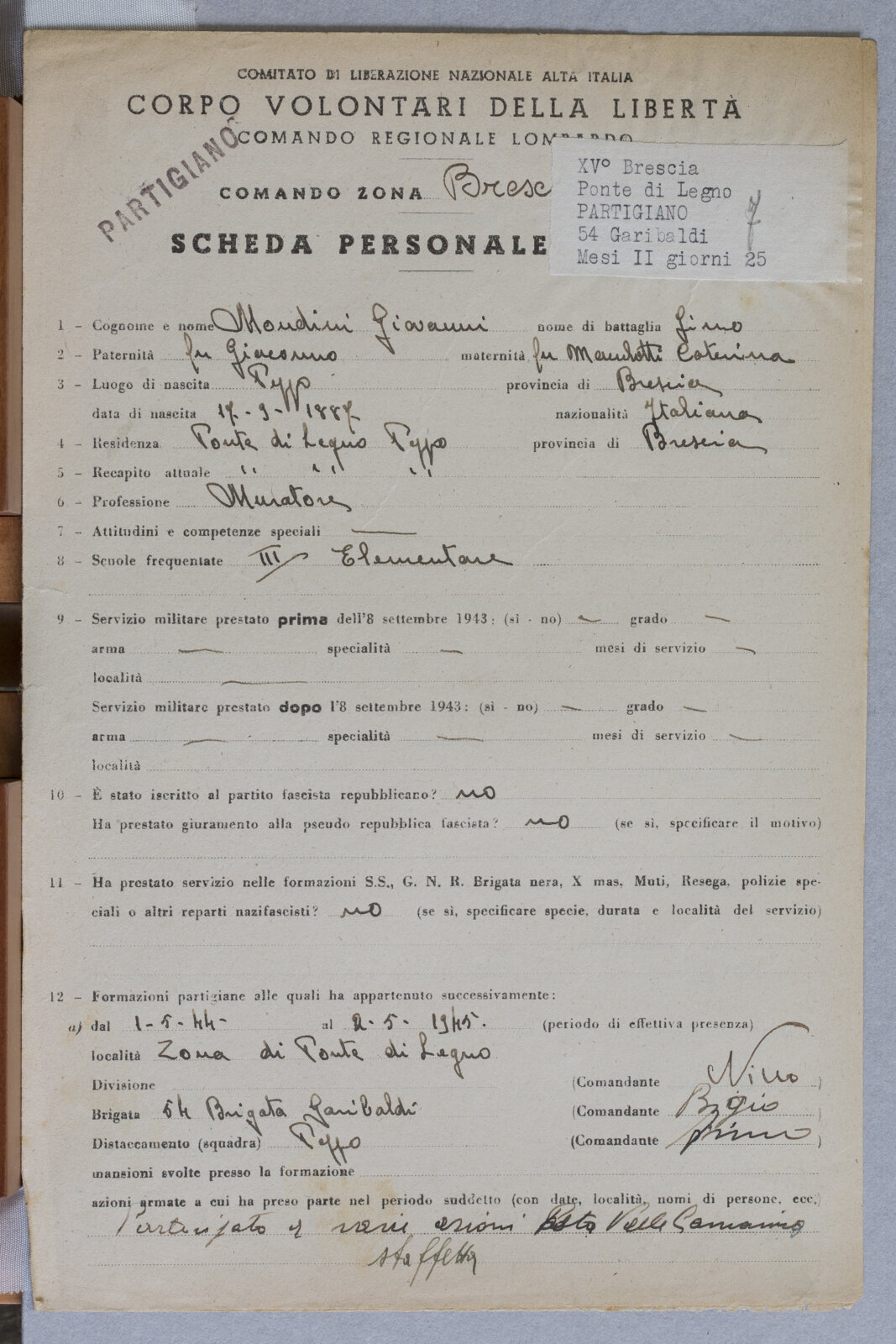 MONDINI MARTINO (17-09-1887) - Partigiano