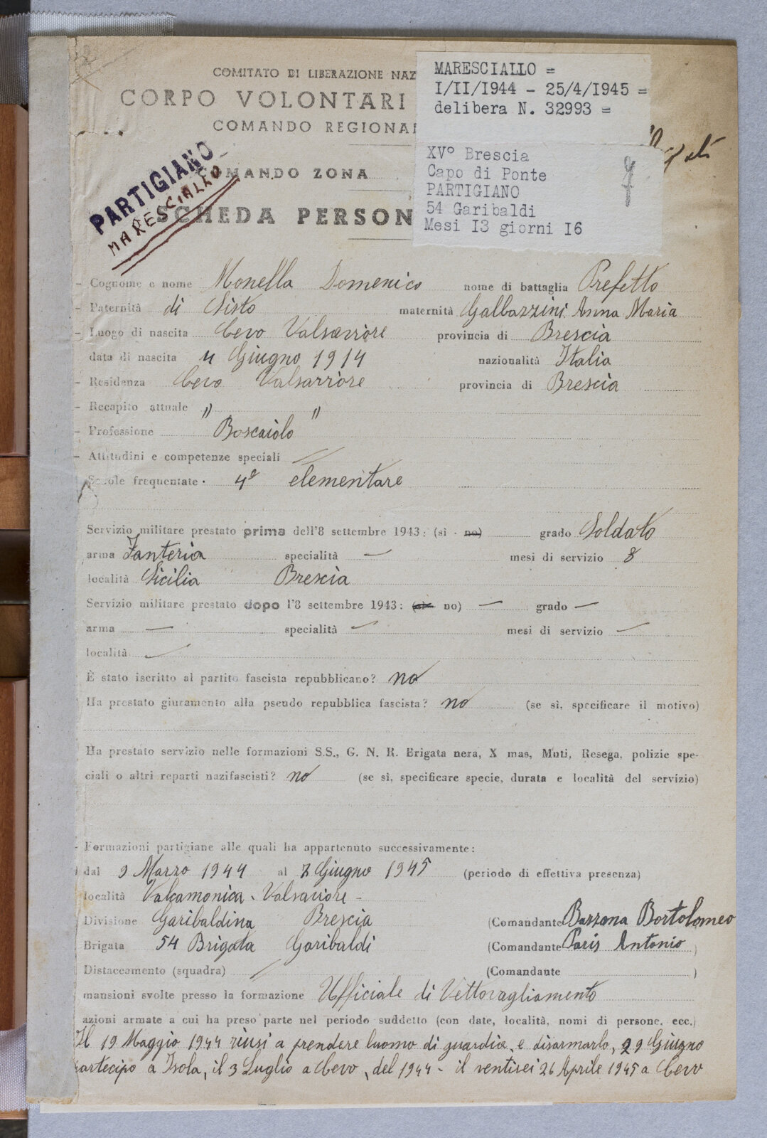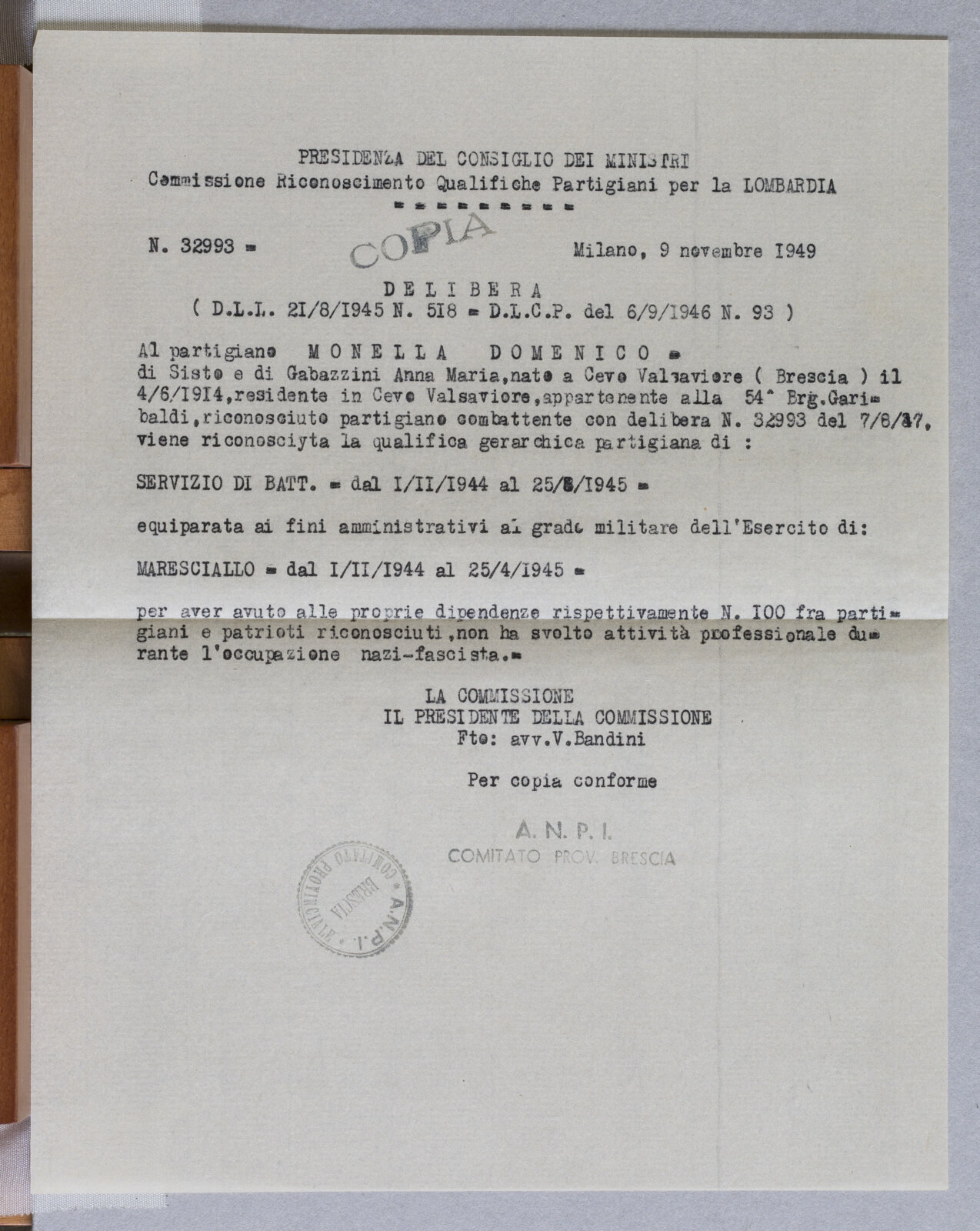 MONELLA DOMENICO - Partigiano e Maresciallo