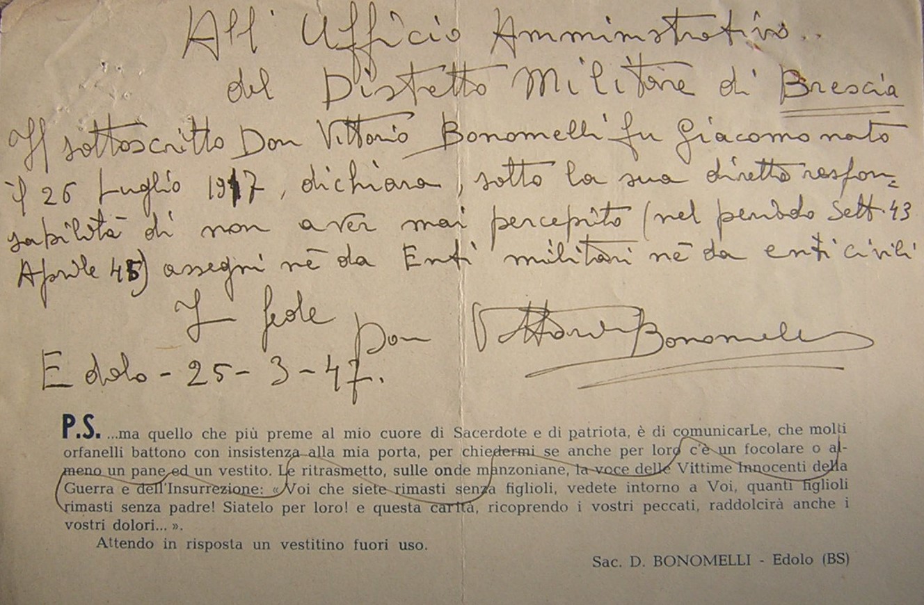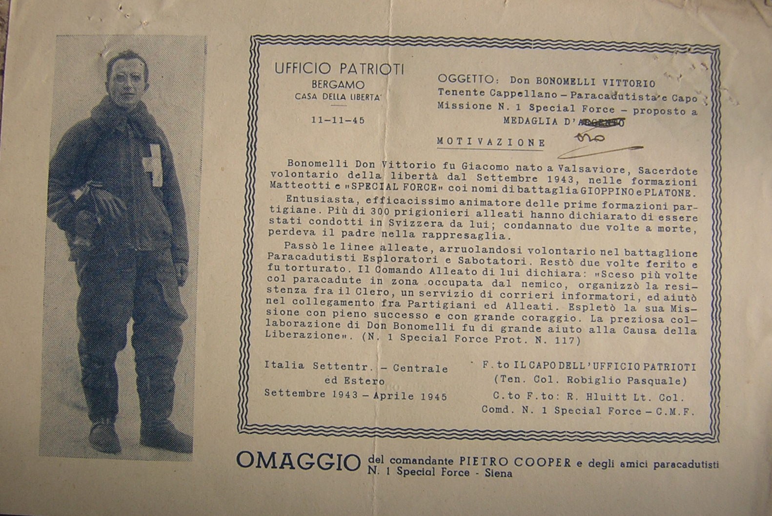 VITTORIO BONOMELLI- Sacerdote, cappellano militare, paracadutista e agente segreto