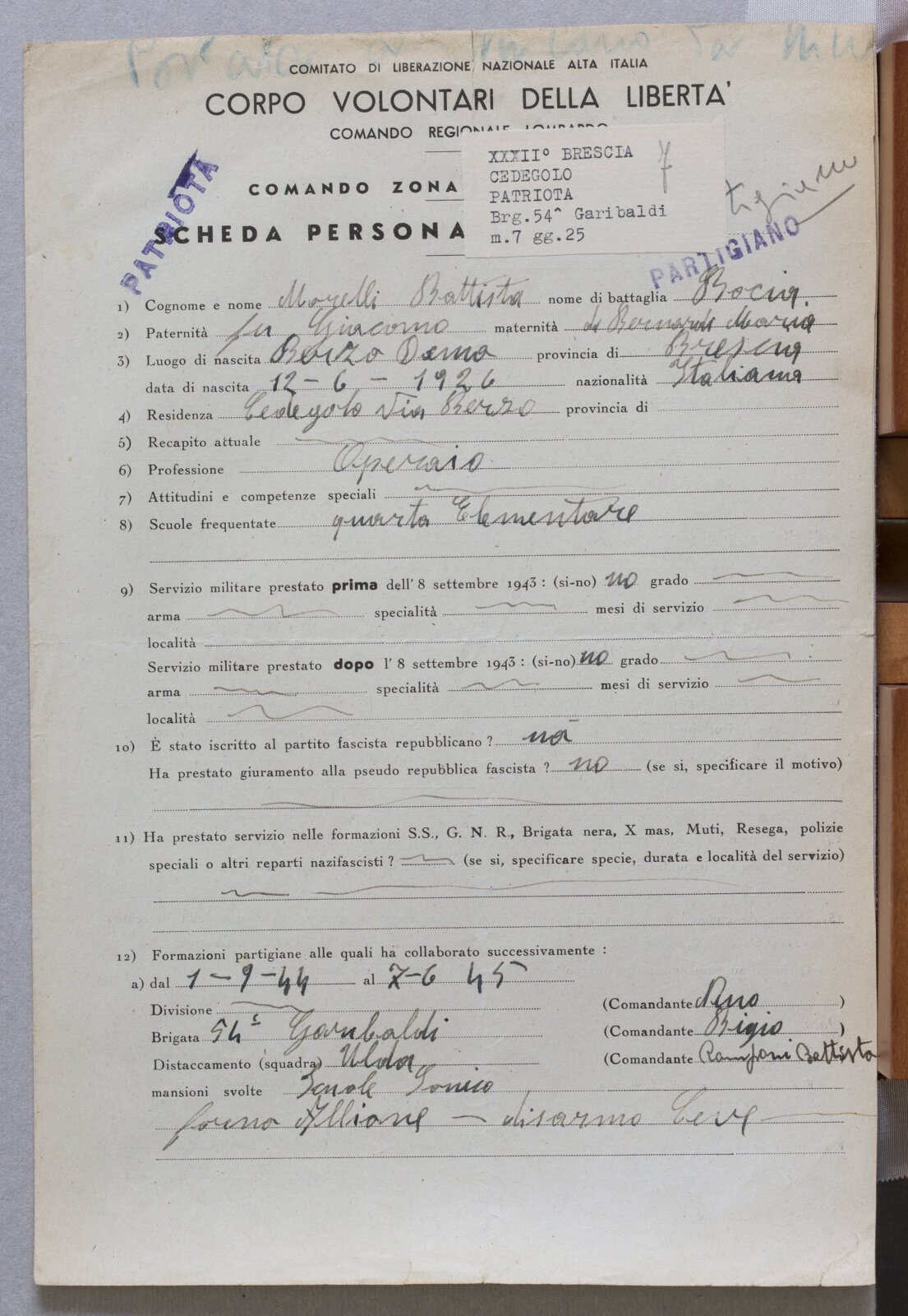 PAROLARI GIOVANNI (05-03-1918) - Partigiano