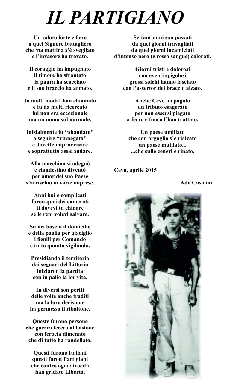 PANNELLO POESIA "IL PARTIGIANO" di Ado Casalini