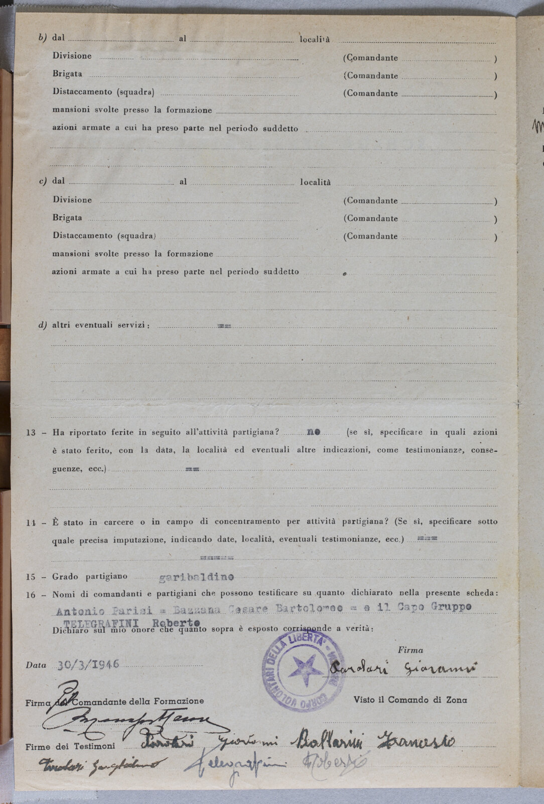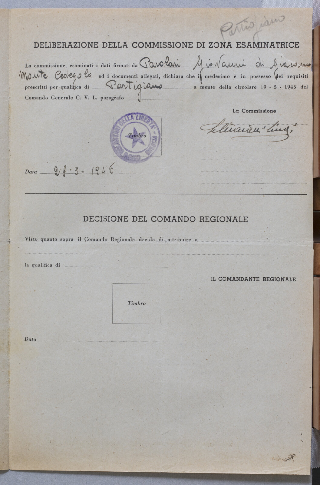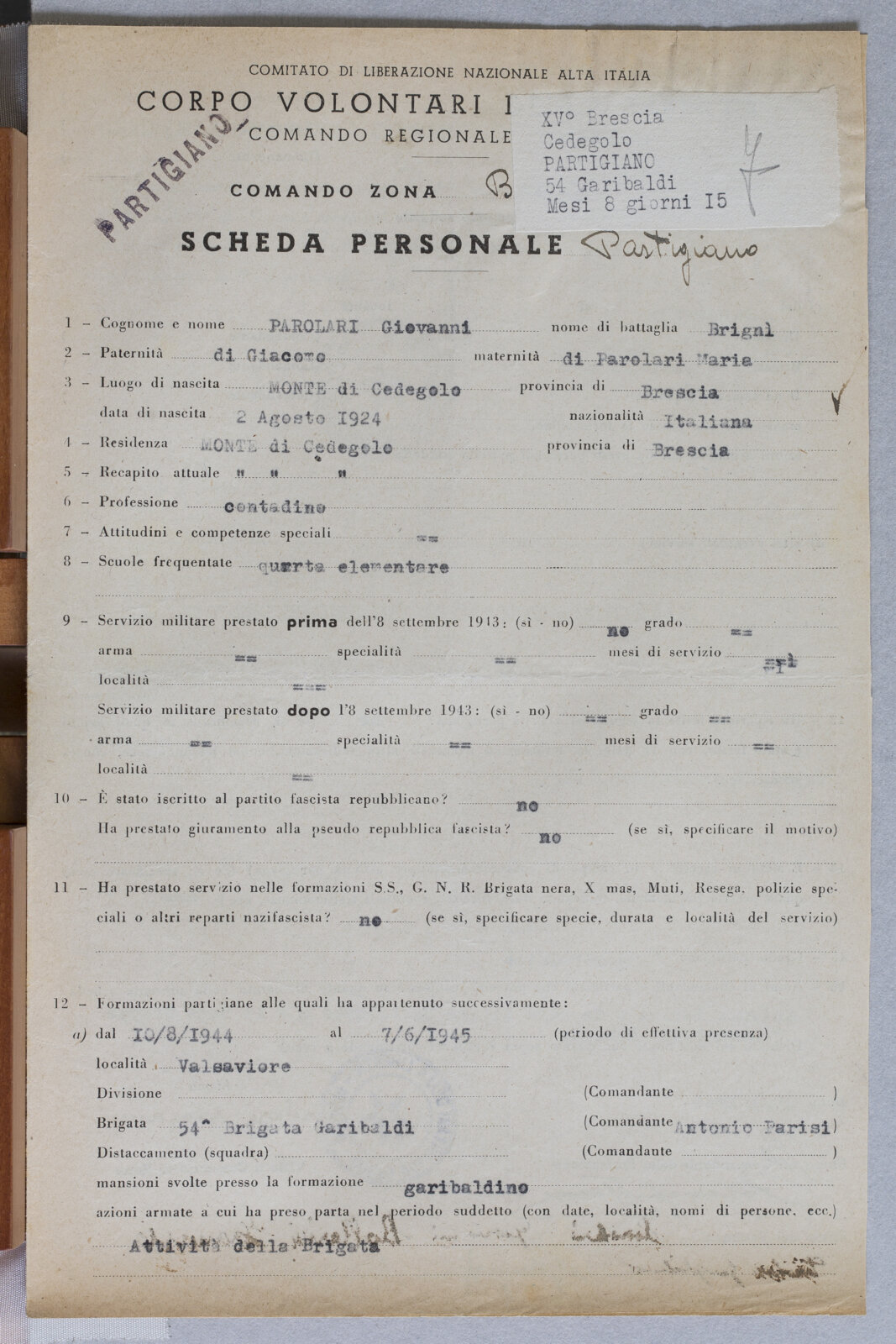 PAROLARI GIOVANNI (02-08-1924) - Partigiano