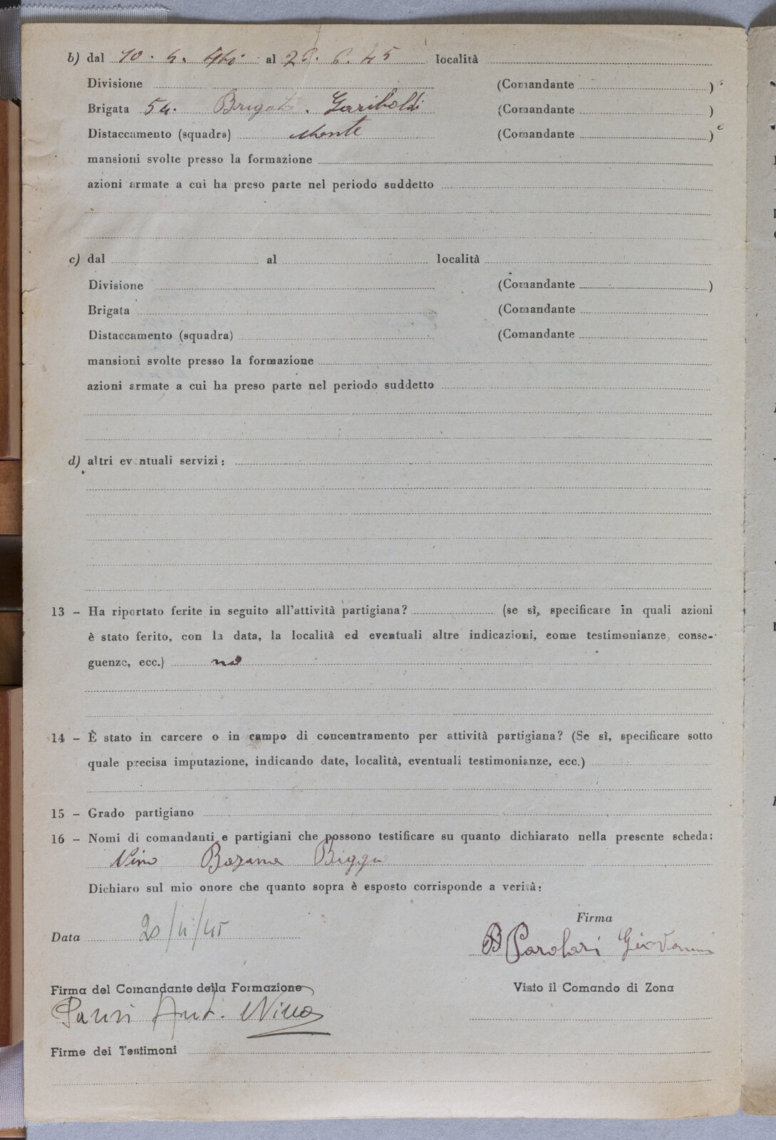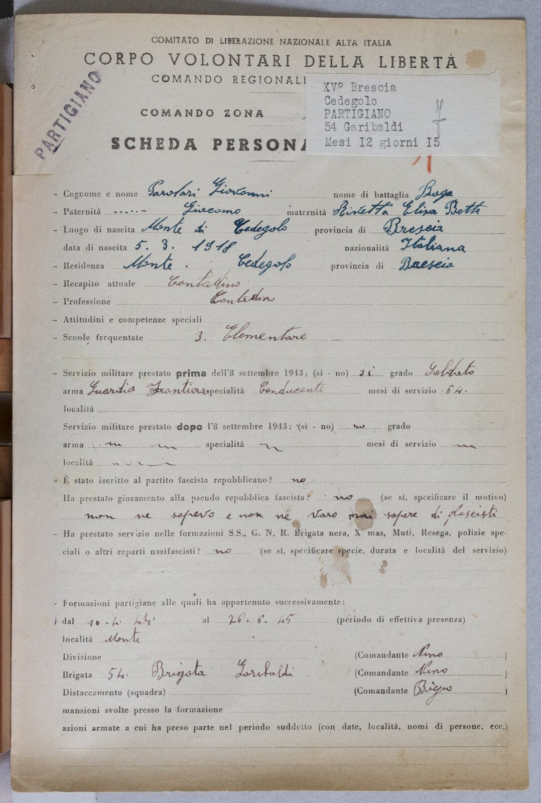 PAROLARI GIOVANNI (05-03-1918) - Partigiano