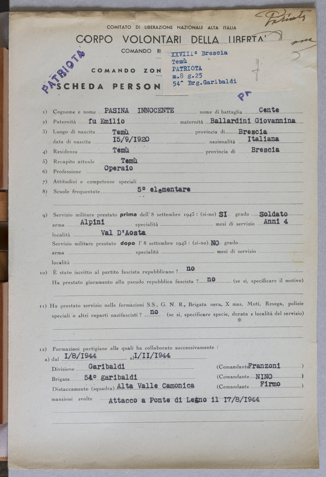 PASINA INNOCENTE - Patriota