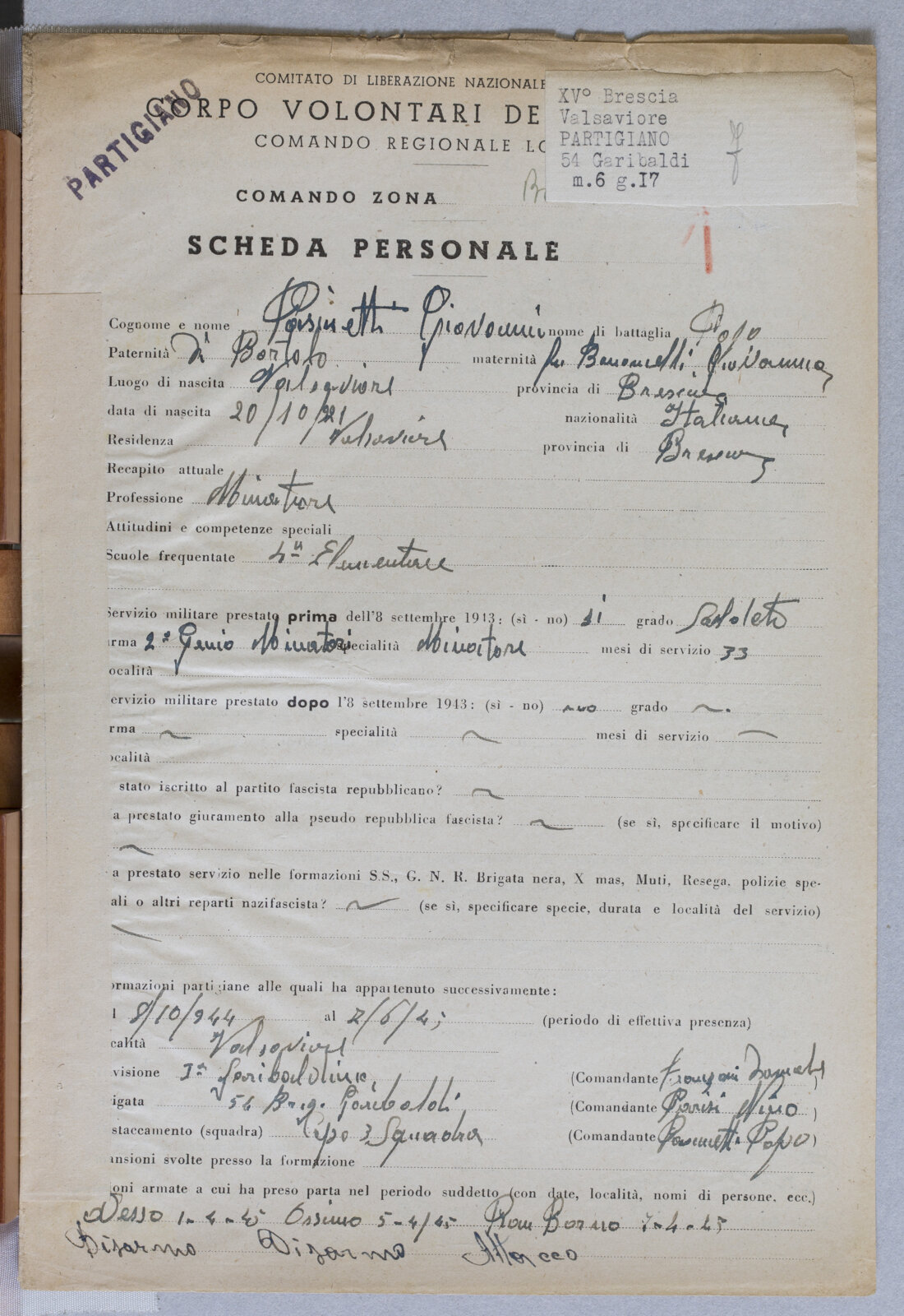 PASINETTI GIOVANNI - Partigiano
