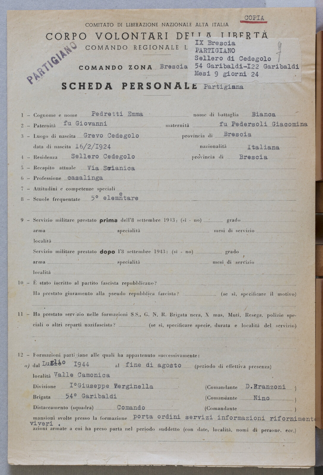 BAZZANA BARTOLOMEO CESARE- Partigiano e capitano