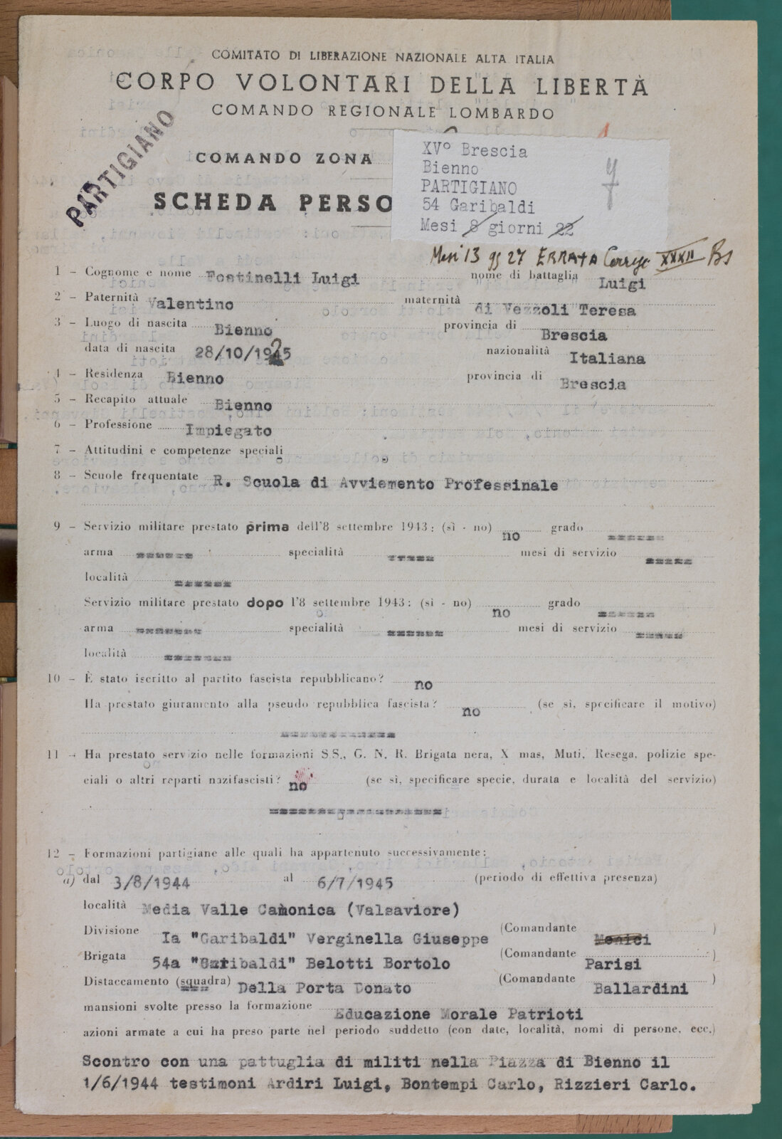 FOSTINELLI LUIGI - Partigiano