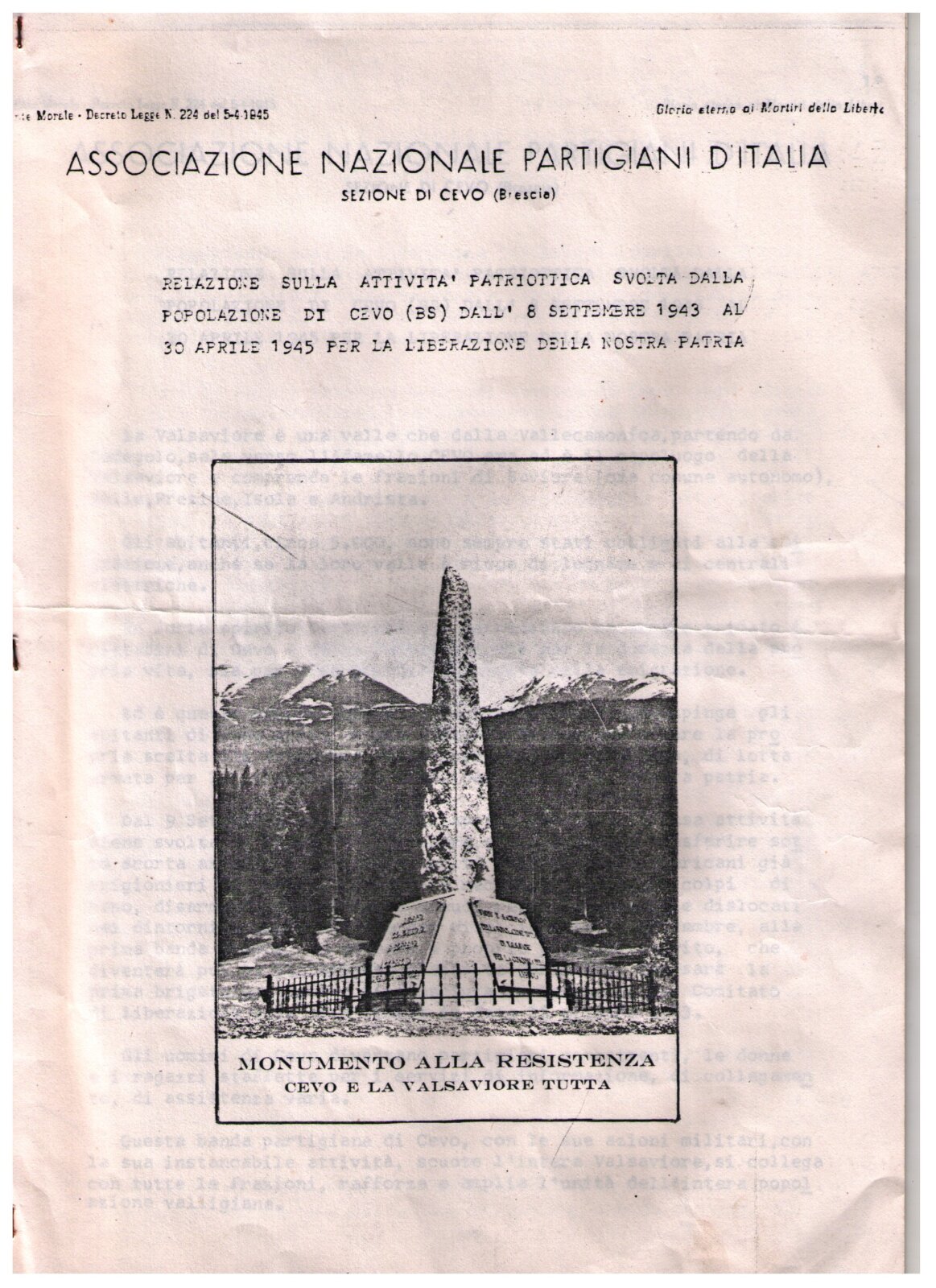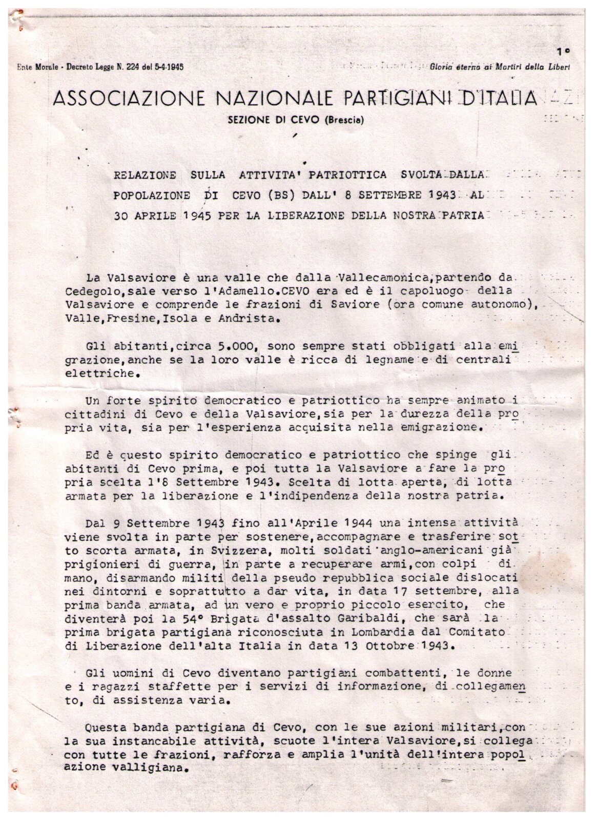 RELAZIONE ATTIVITA' PATRIOTTICA