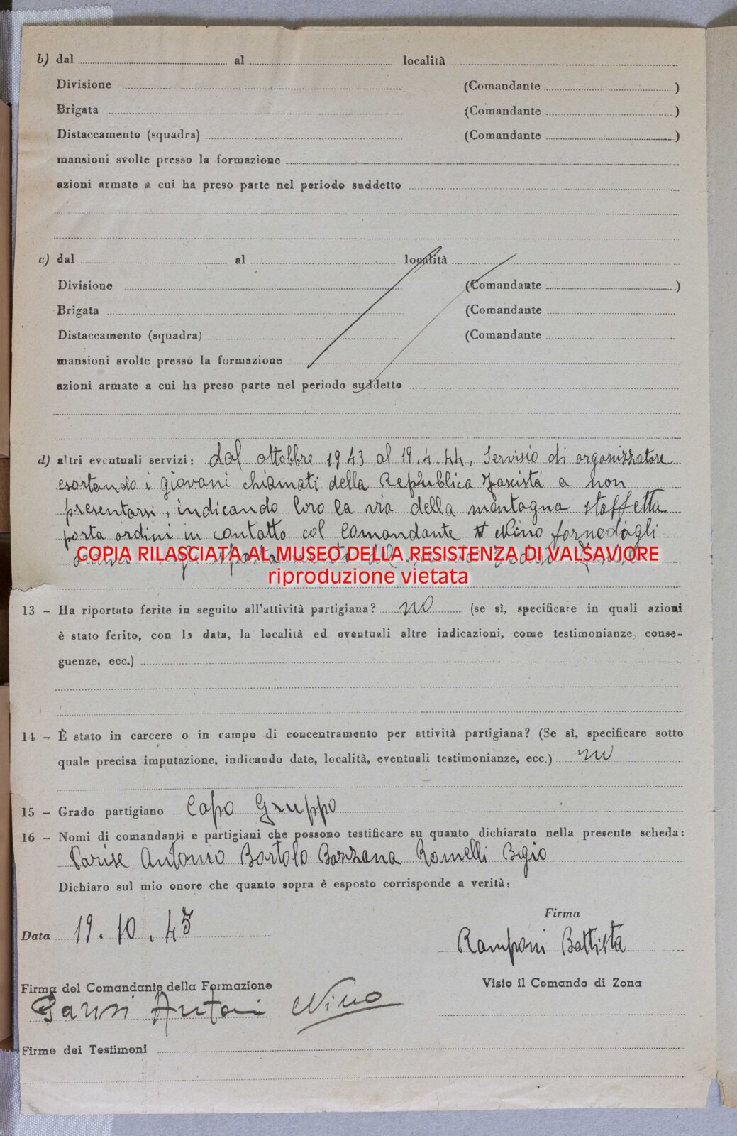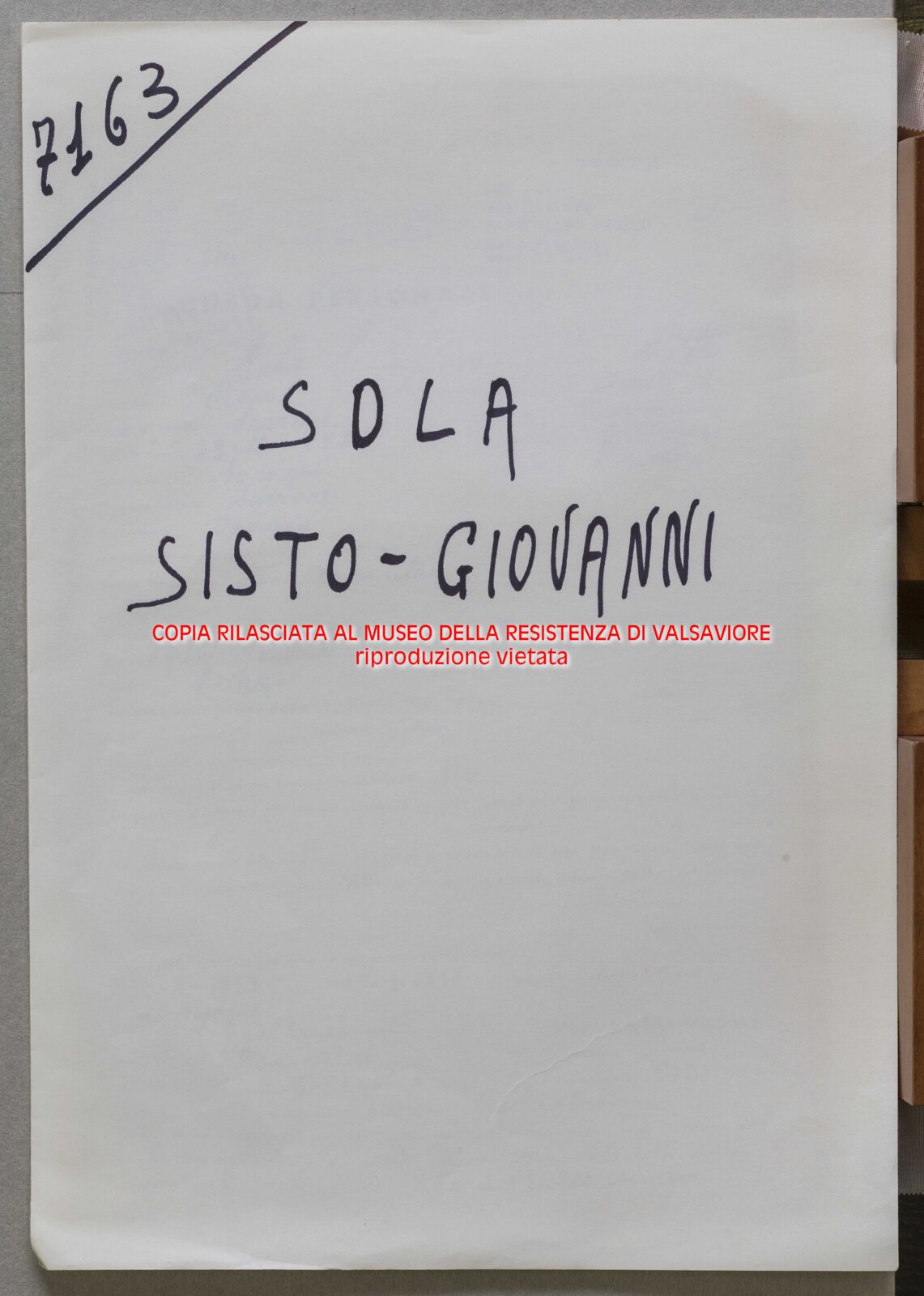 SOLA SISTO GIOVANNI - Partigiano e ferito