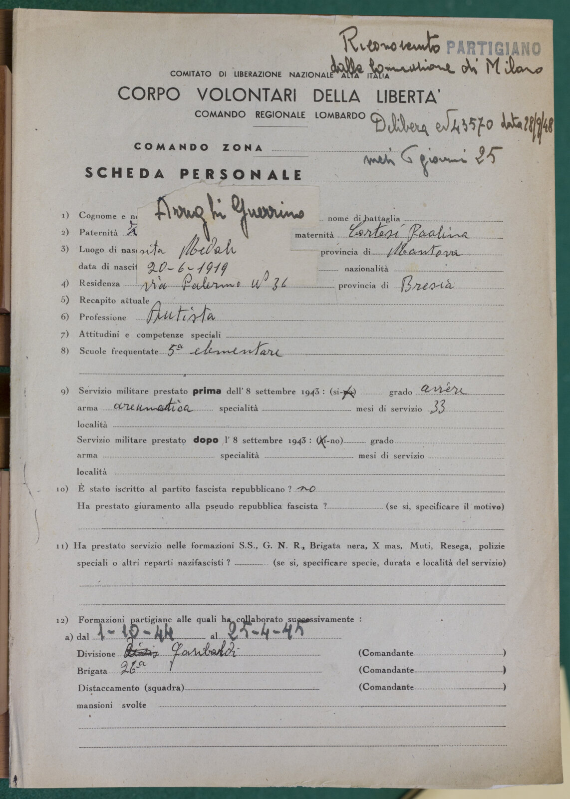 CERVELLI BERNARDO - Scheda Anpi Brescia
