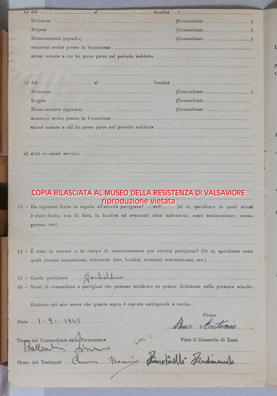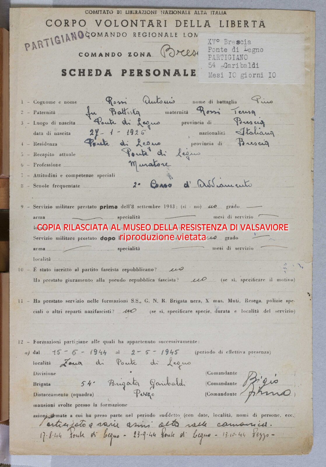 ROSSI ANTONIO - Partigiano