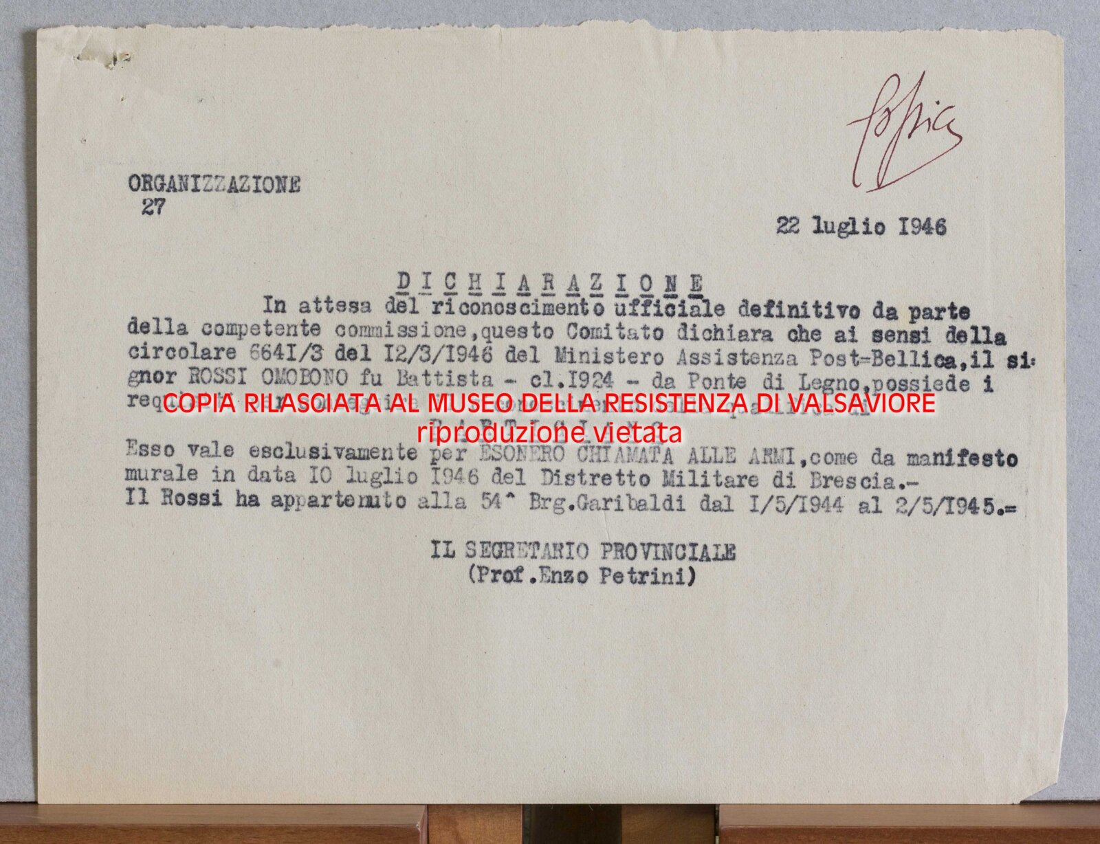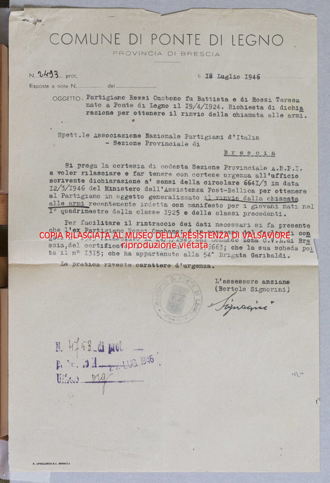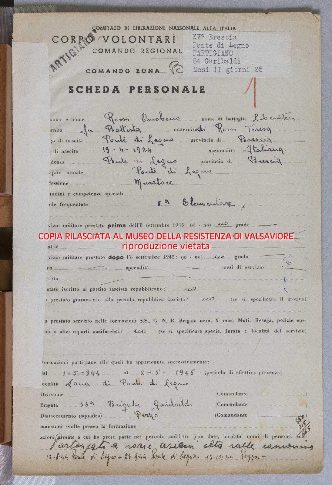 ROSSI OMOBONO - Partigiano