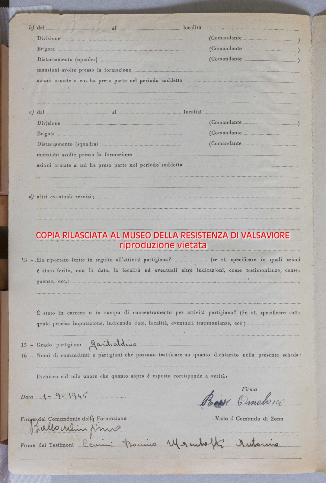 BONOMELLI GIAN MARIA - Partigiano