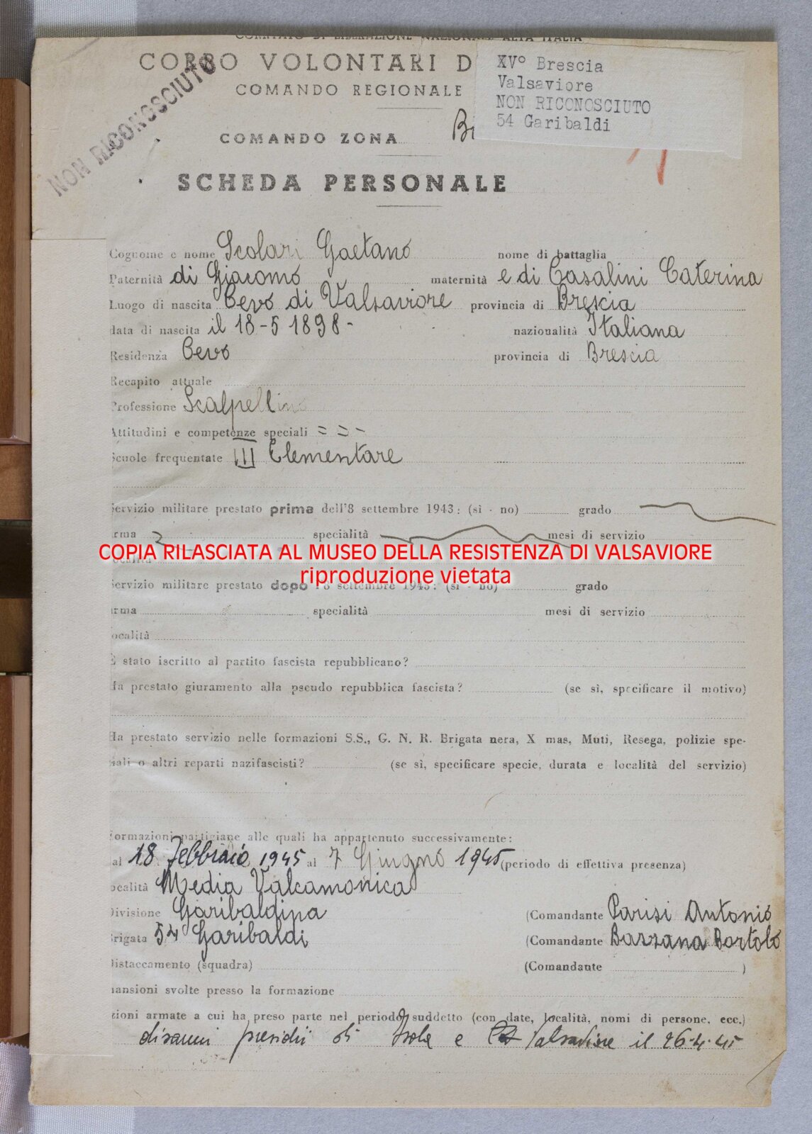 SCOLARI GAETANO - Partigiano non riconosciuto