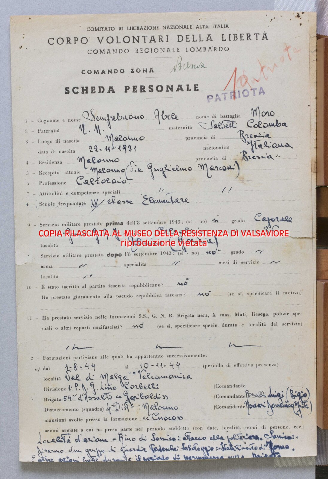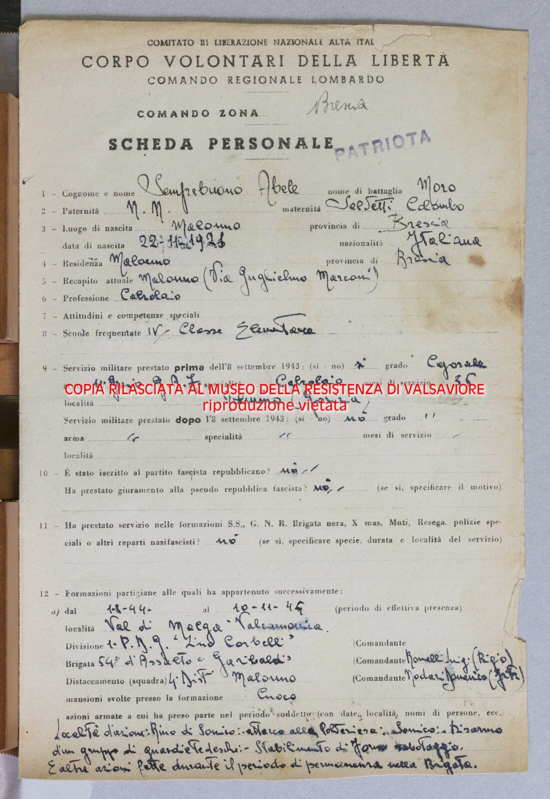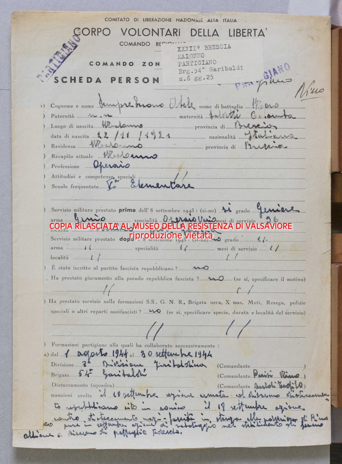 SEMPREBUONO ABELE - Partigiano