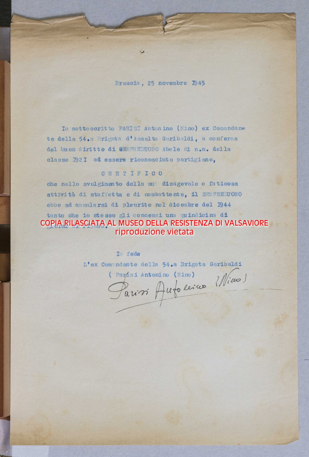 PARISI ANTONINO- Capitano partigiano