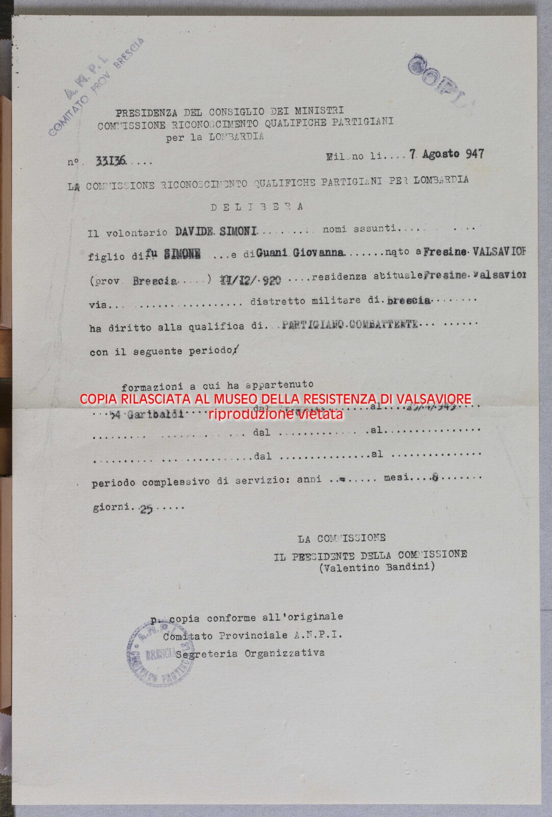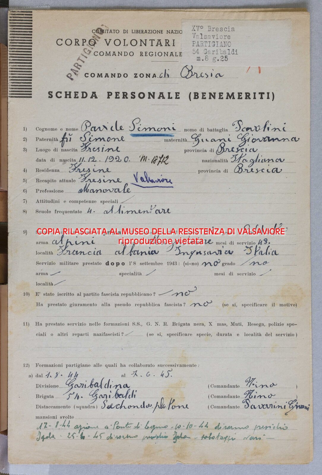 BELOTTI GIOVANNI - Partigiano e Patriota