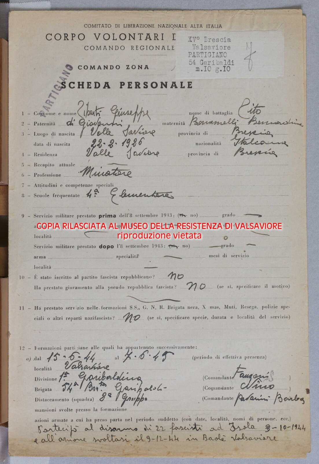 ANGELI BATTISTA- Partigiano non riconosciuto