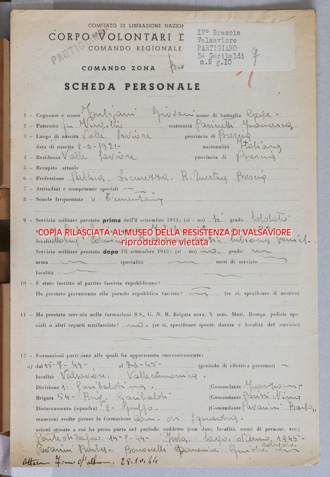 TULIPANI GIOVANNI - Partigiano
