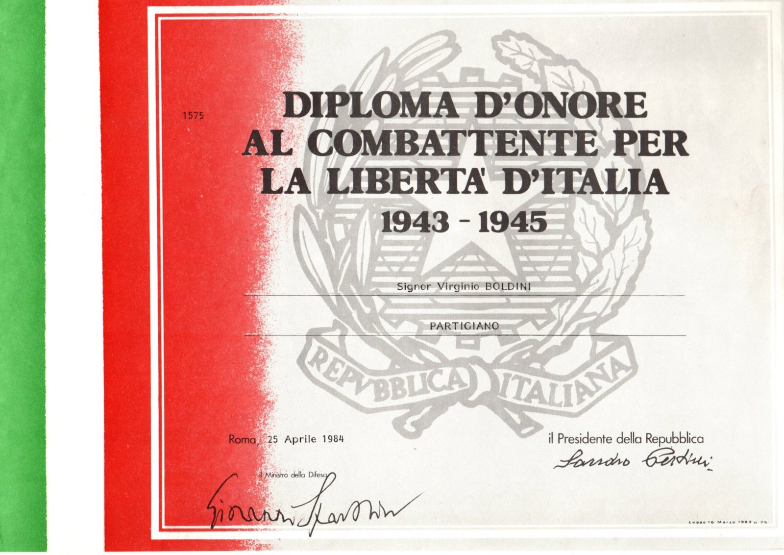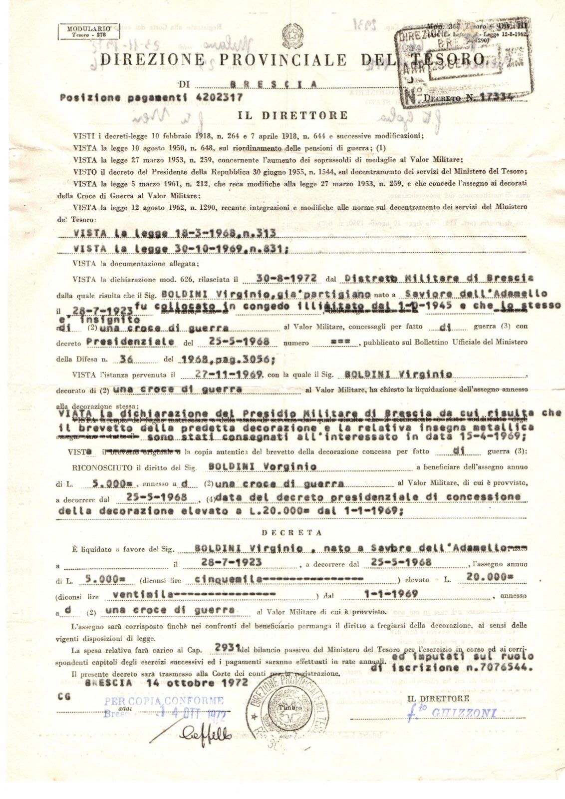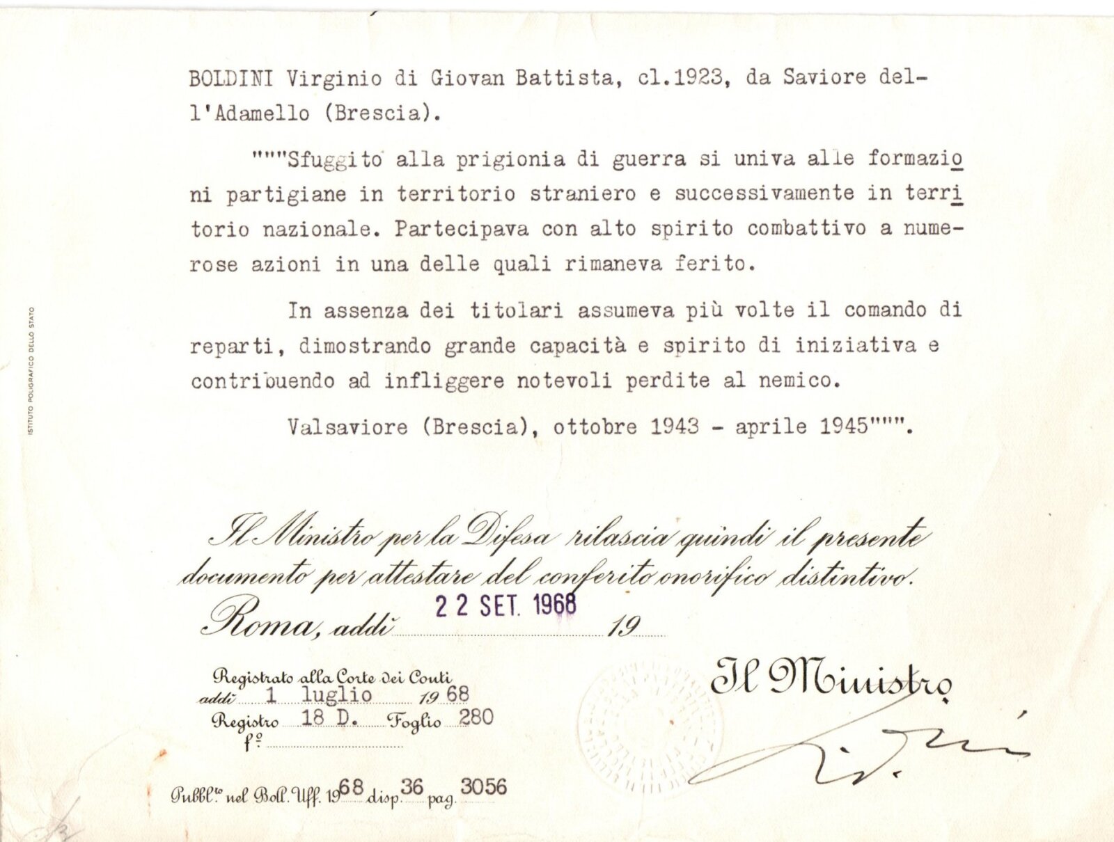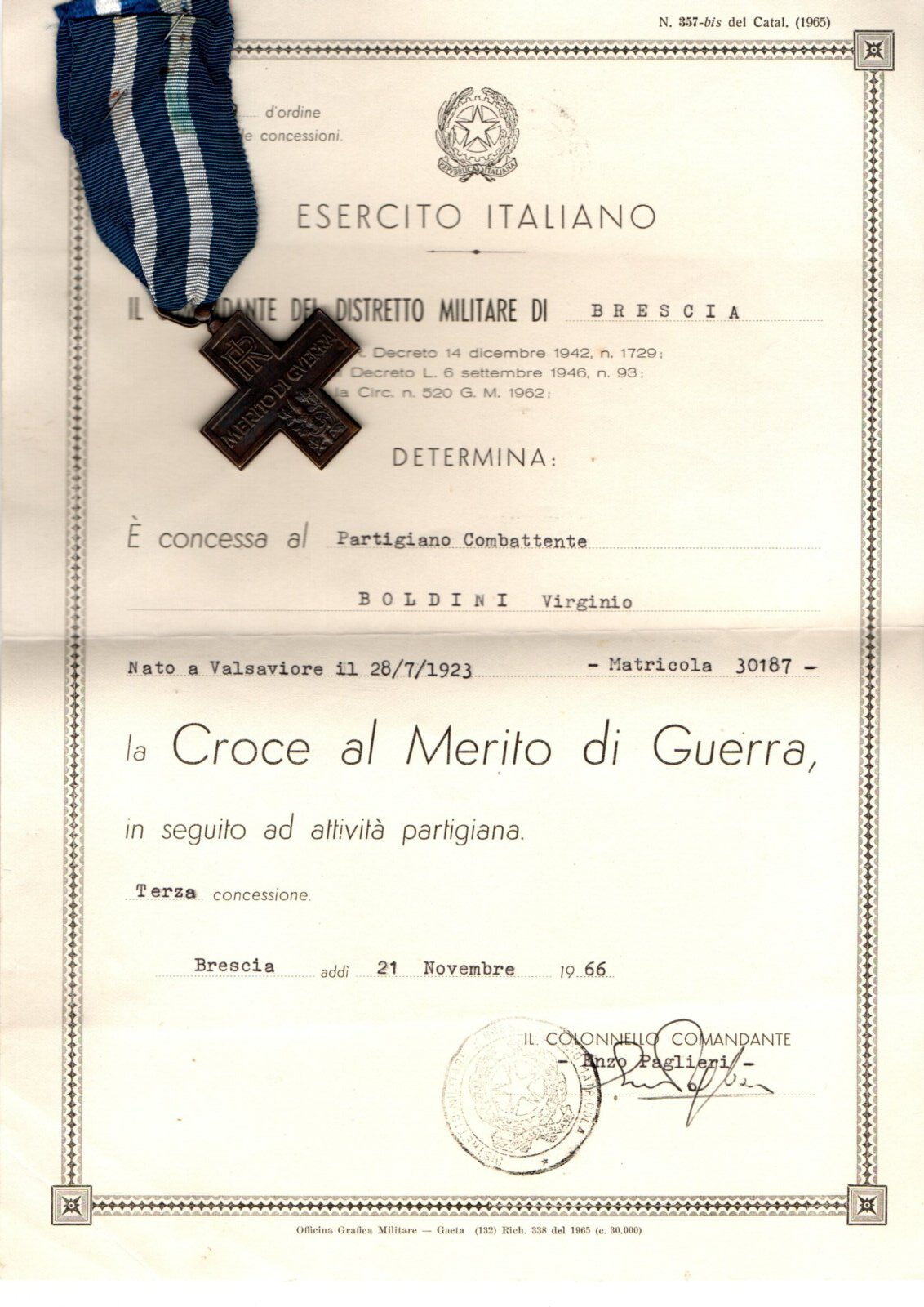 VIRGINO BOLDINI (Gino)- Partigiano
