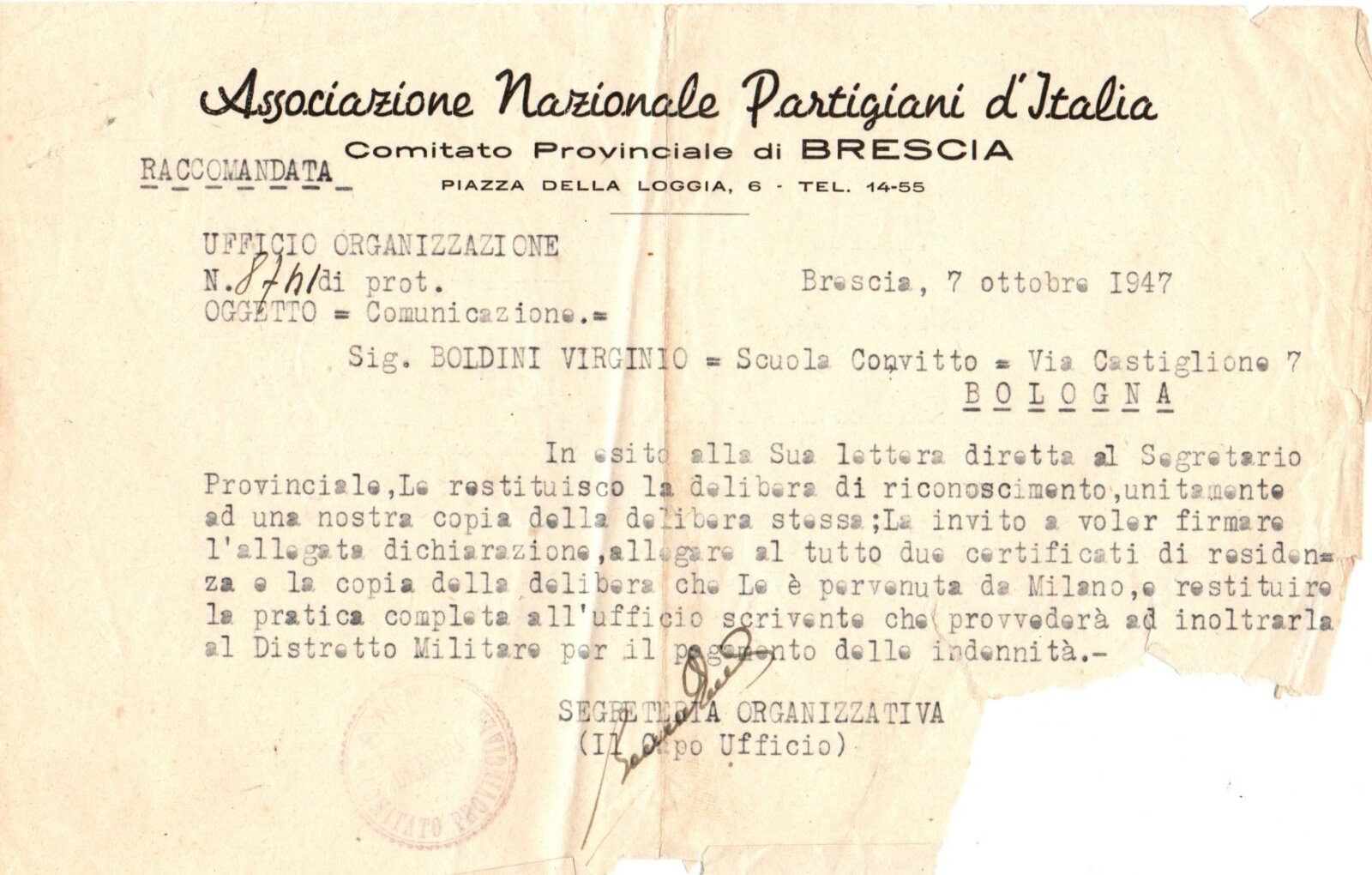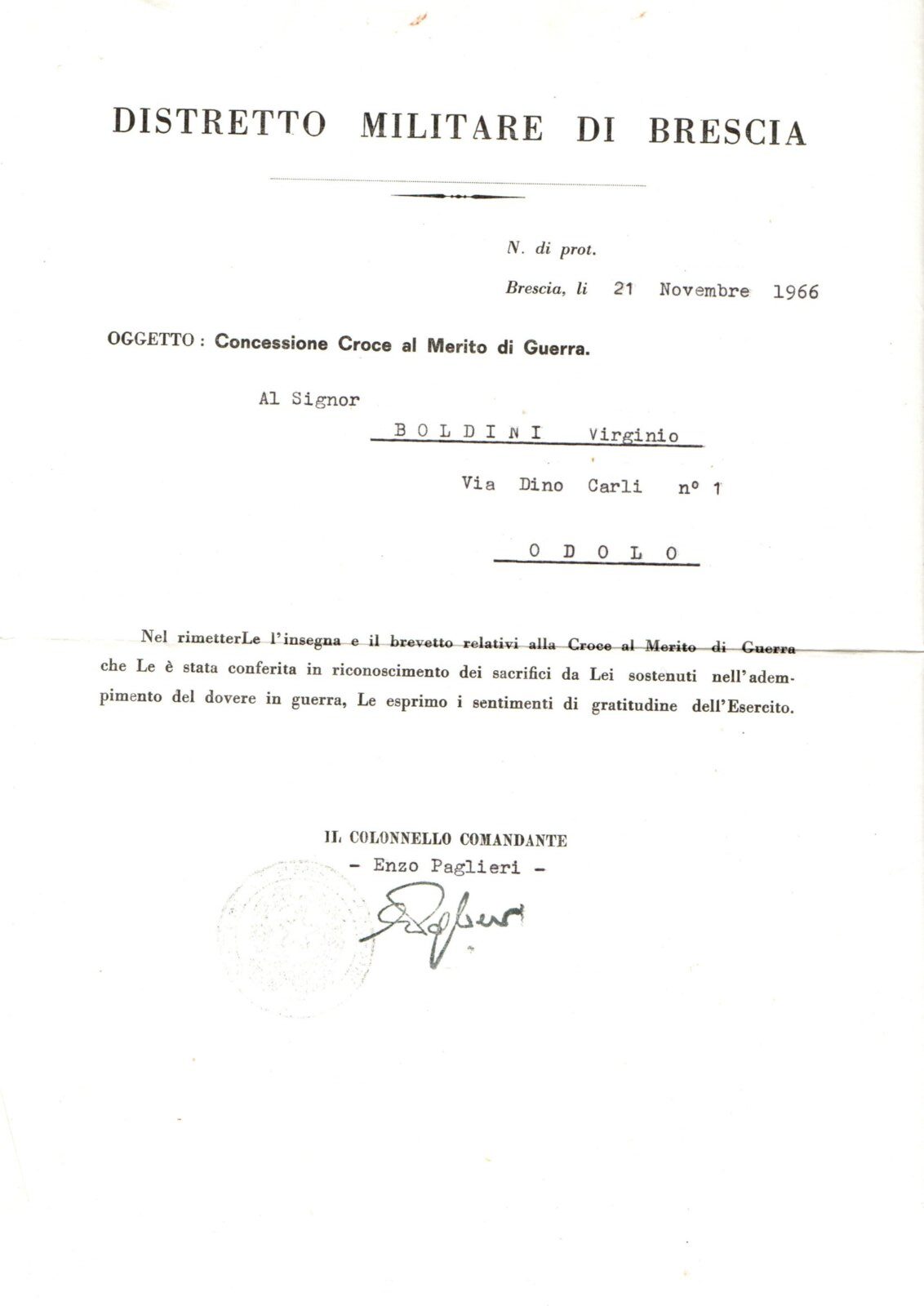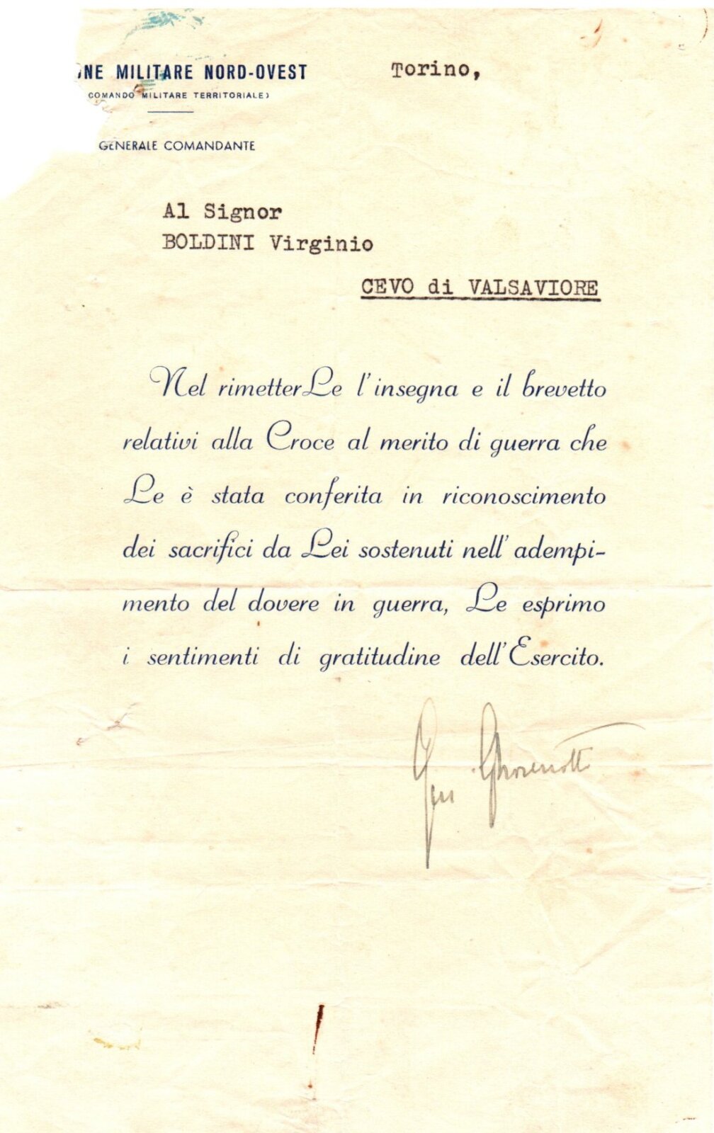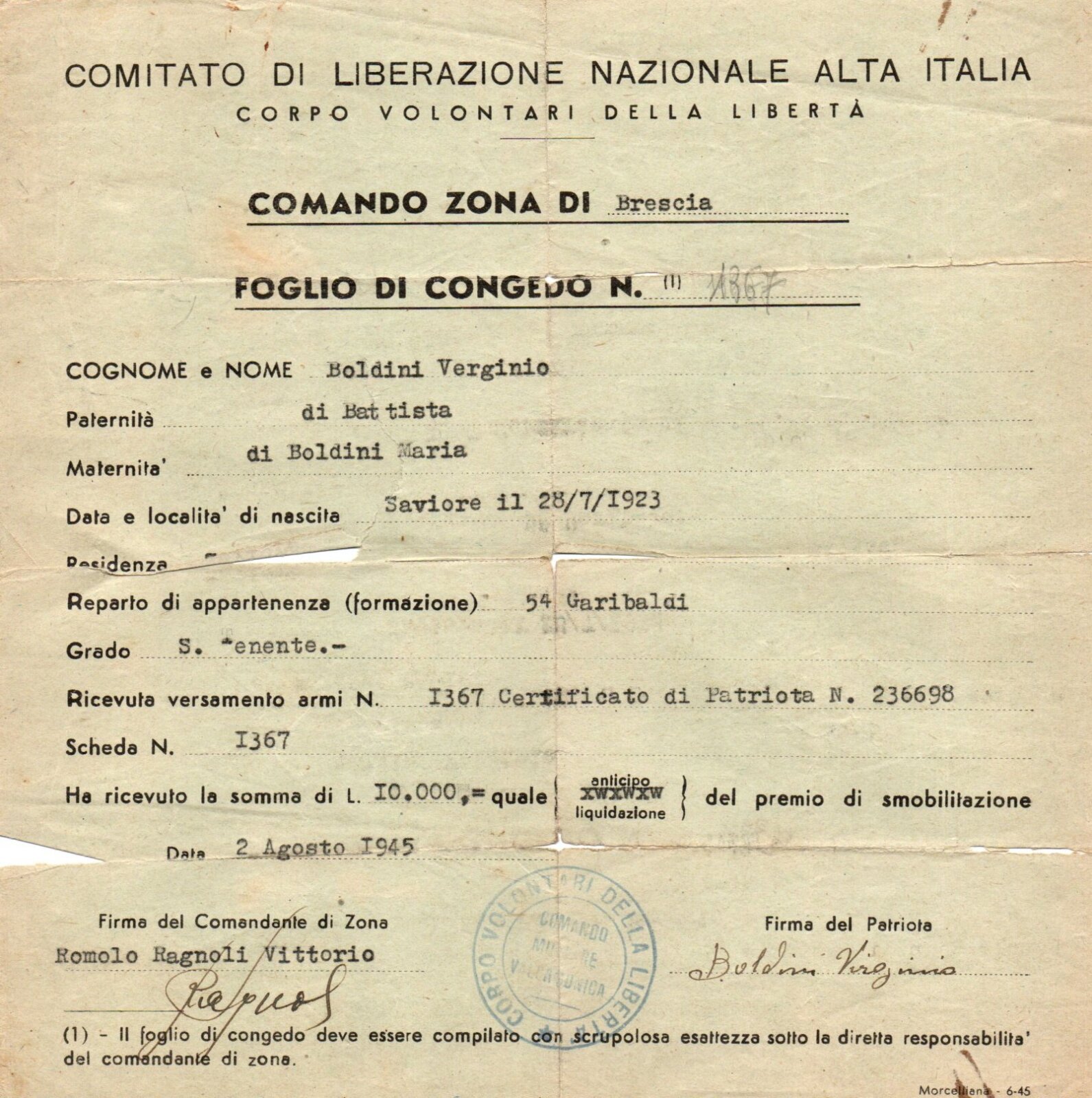 VIRGINO BOLDINI (Gino)- Partigiano