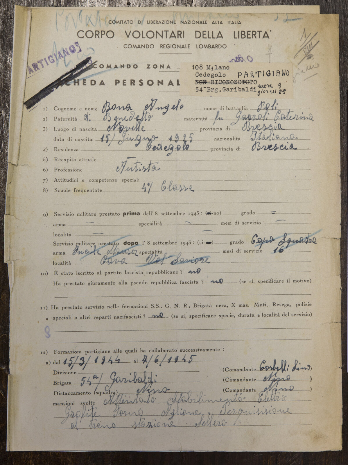 CERVELLI BERNARDO - Scheda Anpi Brescia