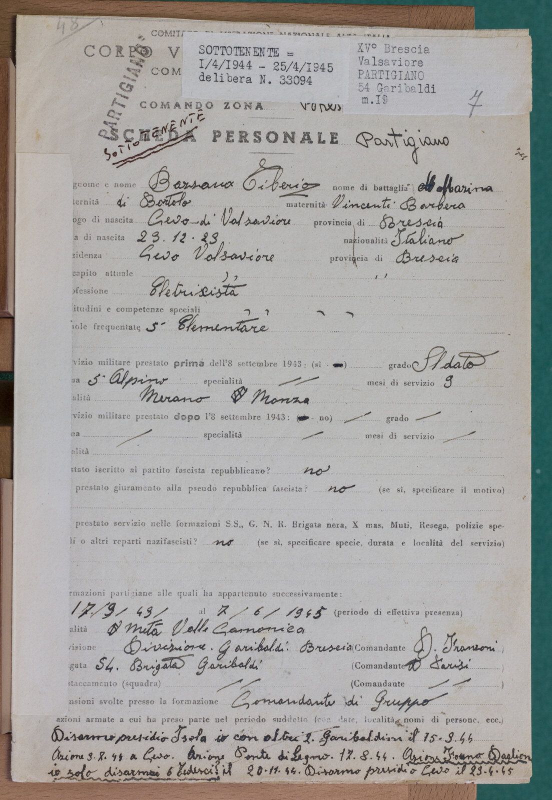 BAZZANA TIBERIO - Partigiano e Sottotenente