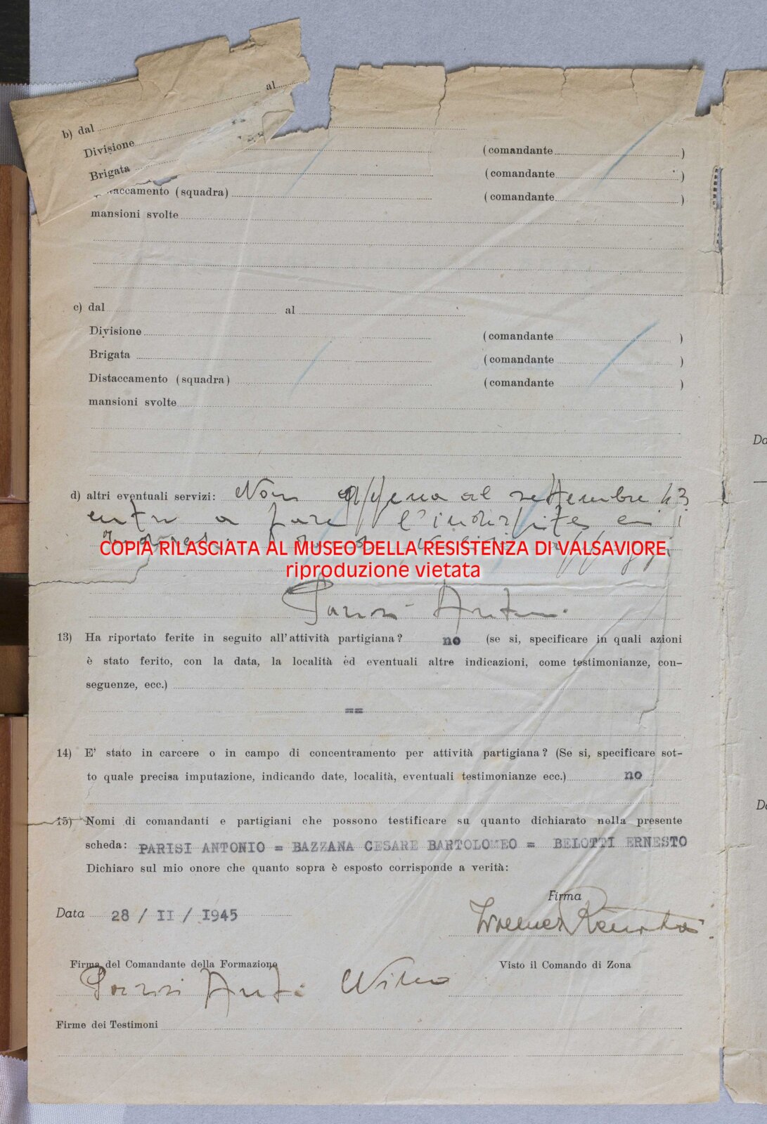 SCOLARI GAETANO - Partigiano non riconosciuto