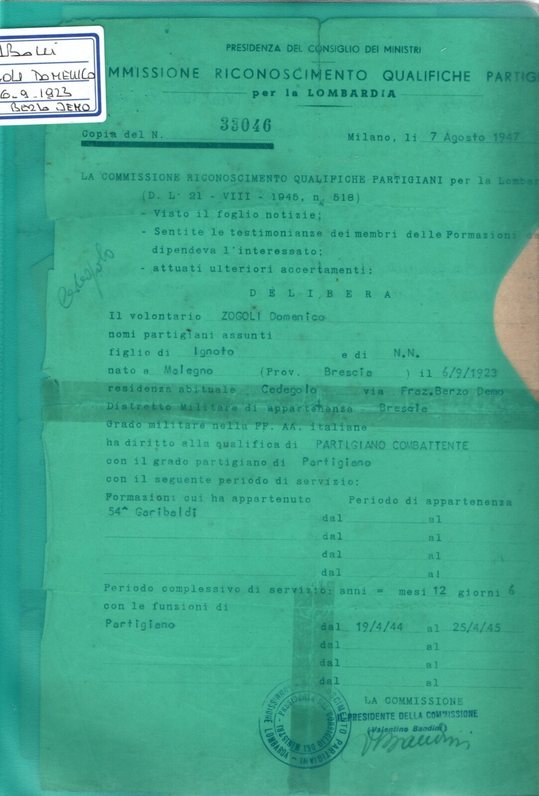 CERVELLI BERNARDO - Scheda Anpi Brescia