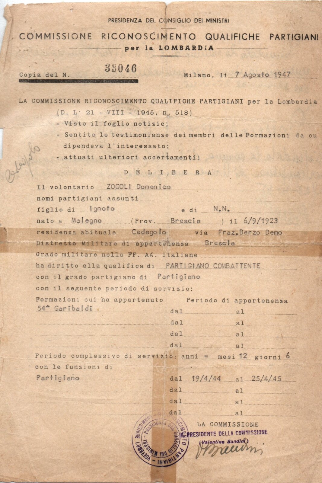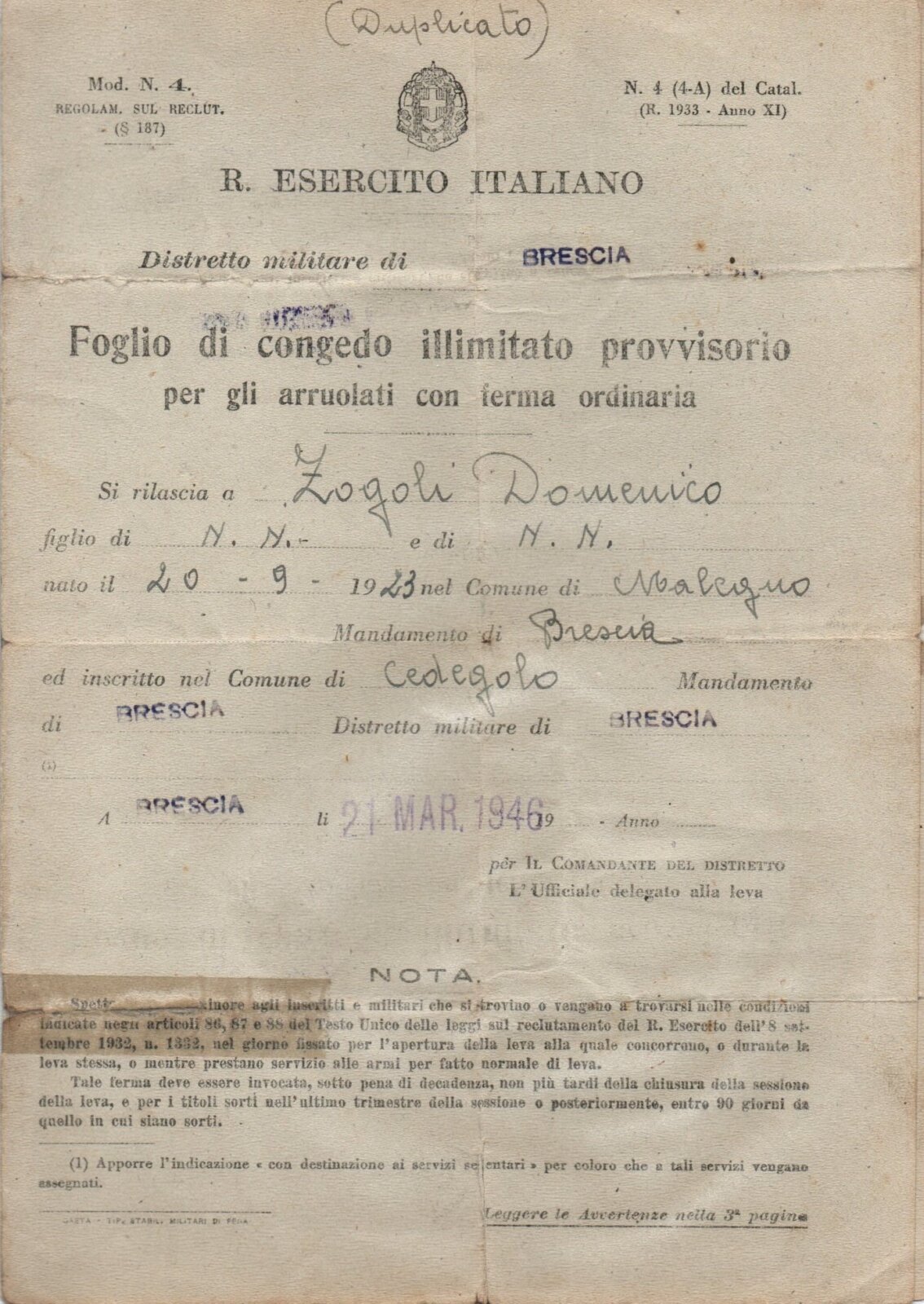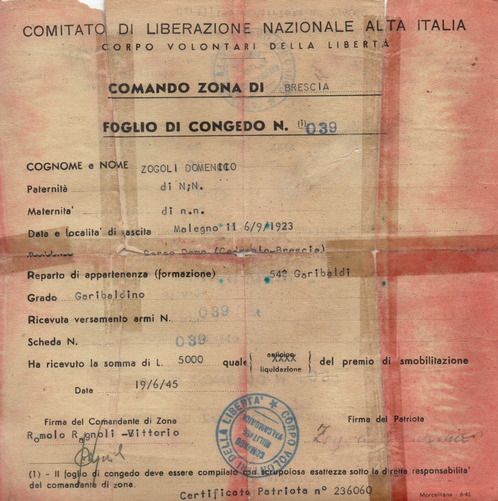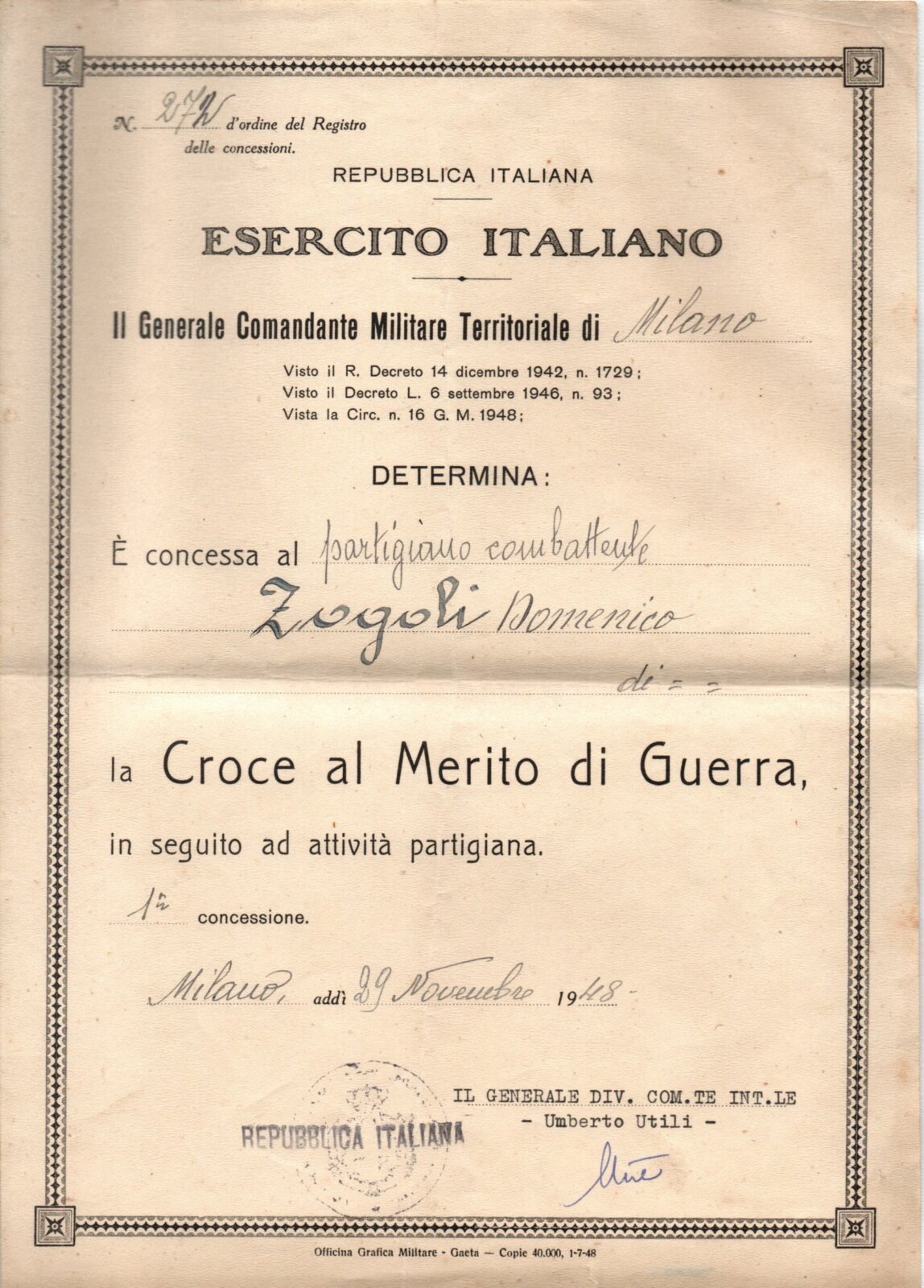 BONIOTTI BATTISTA - Partigiano e Sergente Maggiore